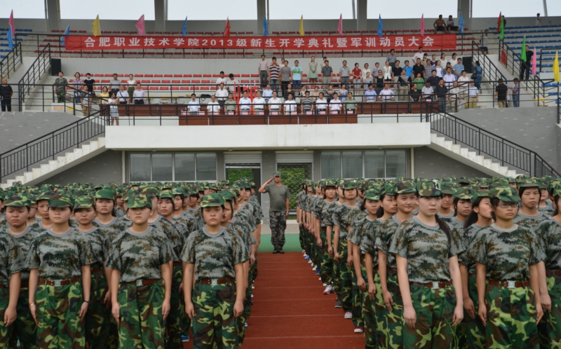 9月10日上午,2013级新生开学典礼暨军训动员大会在院田径场隆重举行。院党政领导丁家康、方志斌、茆书斌、胡其云、孙兴林、金辉、汤先觉、张广龙以及南京军区军训处处长徐方东、南京军区淮南国防教育基地主任杨新勇出席了大会。各系(分院)、各部门负责人,新生班级辅导员(班主任),全体2013级新生、军训教官和部分教师参加了大会。大会由副院长孙兴林主持。