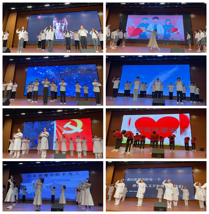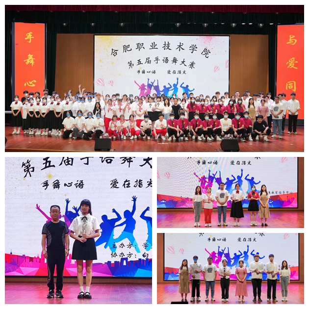 温馨的音乐,灵动的手语,璀璨的舞台,热情的观众,合职学子集聚一堂。来自各二级学院共计十六支参赛队伍的表演精彩纷呈,尽显风采。满满正能量的《燎原四方》,青春激扬的《New Boy》,活力四射,动作整齐划一,点燃了在场每一个人的热情。天使般真情演绎的《平凡天使》、轻扬曼舞的《这世界那么多人》用无声的手语划出了唯美,深深感染了在场的每一位观众。《听我说谢谢你》因为有你,温暖四季;《灯火里的中国》青春婀娜,胸怀辽阔;《守护着我的光》不惧挫折,拥抱灿烂;《夜空中最亮的星》青春梦想,坚持追随;《一起向未来》分享力量,努力前行。同学们带着年轻的底气与冲劲,向每一颗年轻的心展示着热爱的力量……别出心裁的队形转换,细腻流畅的动作展示,舞蹈与手语巧妙结合,勾勒出一幅幅动人的画面,手语之美,尽显其中。