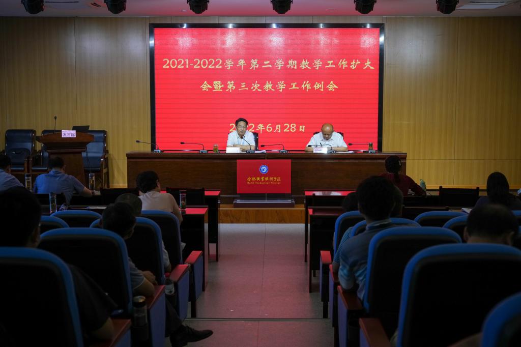 6月28日下午,Beat3652021-2022学年第二学期教学工作扩大会暨第三次教学工作例会在汇心湖校区图书馆一楼报告厅召开。教务处、学生处、科技处、教育教学督导评价中心、现教中心、图书馆、校医院负责人,各二级学院党总支书记、院长、副书记、副院长参加会议,校党委书记王杰才出席会议。会议由副校长周晓隆主持。