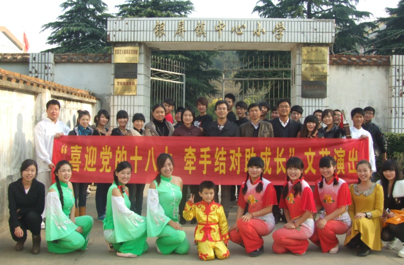 11月7日下午,我院团委与巢湖团市委联合举办的“喜迎党的十八大 牵手结对助成长”送文化下乡活动在银屏中心小学成功举办。院团委、巢湖团市委、银屏镇政府相关负责人与300余名师生共同观看了文艺演出。