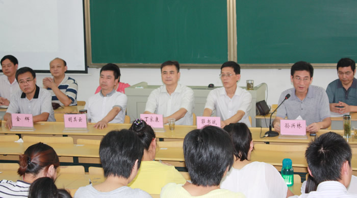 9月13日下午巢湖职业技术学院2011年青年教师培训班开班典礼在学院教学楼B楼一楼合班教室举行。院领导丁家康书记、 茆书斌副书记兼副院长、胡其云副书记、孙兴林副院长、金辉书记出席开班典礼,组织人事处、教务处、教学督导室、实训中心及各系部(分院)负责人和2009年至2011年新进青年教师共70余人参加了开班典礼。副院长孙兴林代表学院领导作了重要讲话。开班典礼由组织人事处处长叶树荣主持。