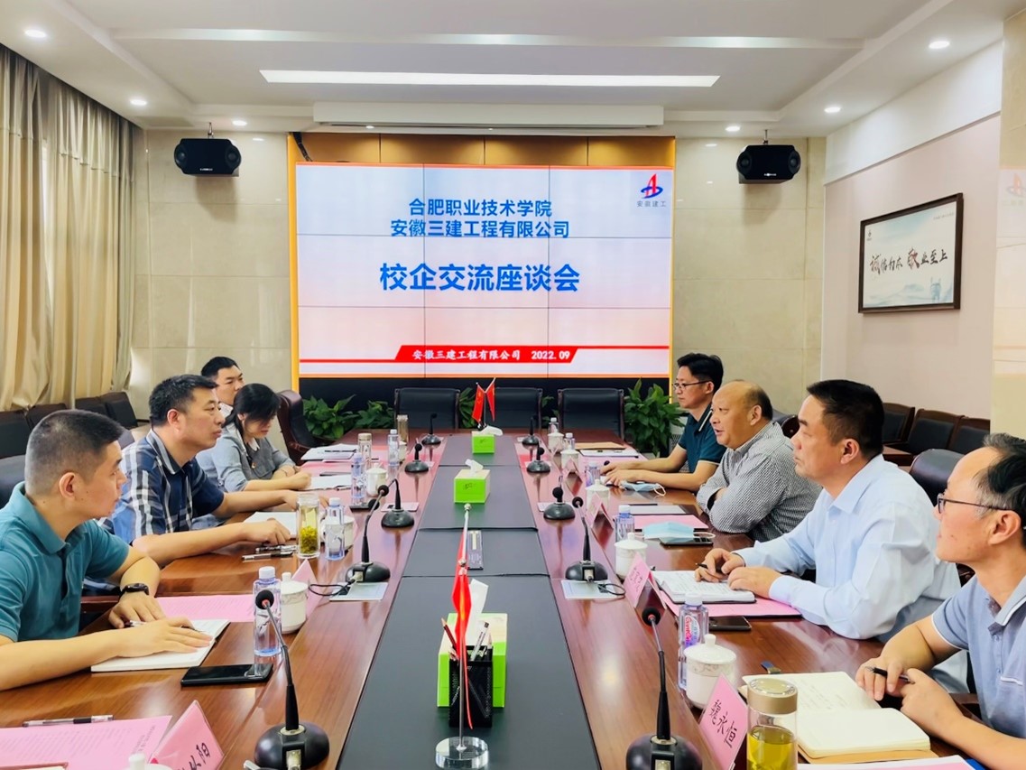 为加强校企合作,深入促进产教联动,9月27日上午,校党委委员、副校长周晓隆,校教务处副处长(主持工作)窦红平,建筑工程学院院长范家茂、副院长魏永恒、综合办主任杨靖一行赴安徽三建工程有限公司开展调研。安徽三建工程有限公司党委副书记、总经理徐少华,工会主席黄丽春,安全生产管理部主任胡晓东,人力资源部主任王辉参加了调研会。