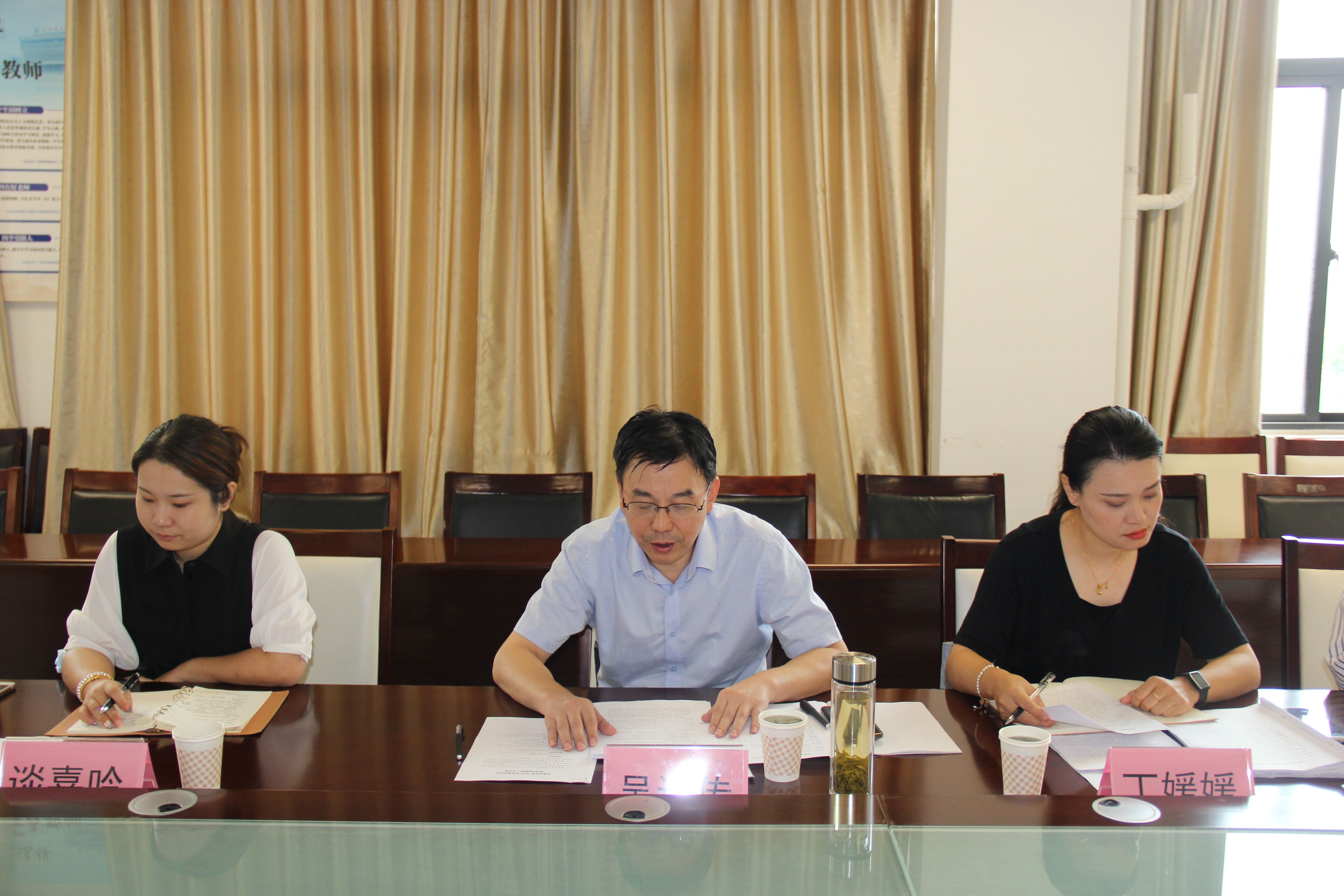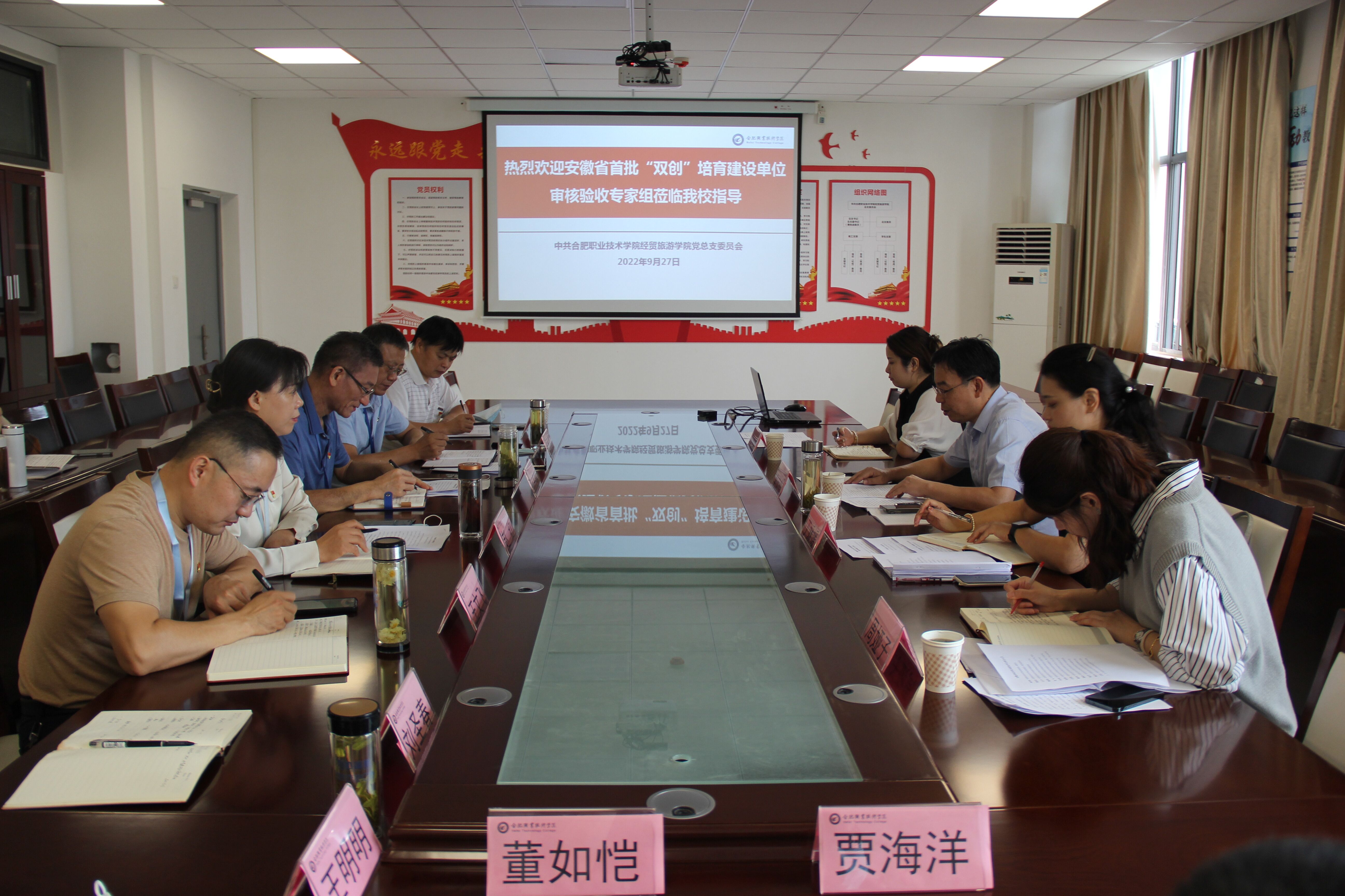 上午9:00,现场审核验收会在经贸旅游学院会议室召开,吴传运通报了省教育工委《通知》精神,并说明本次党建“双创”培育建设单位验收工作任务、要求及流程。
