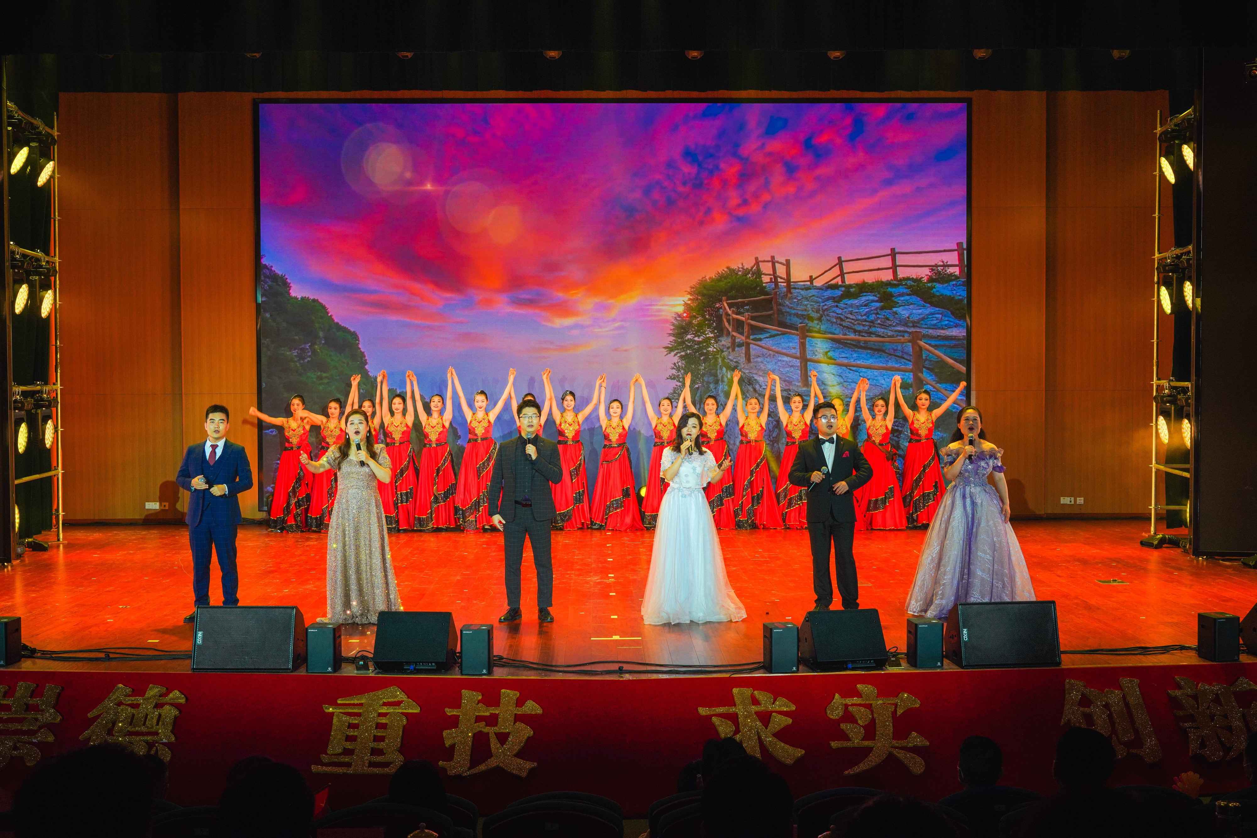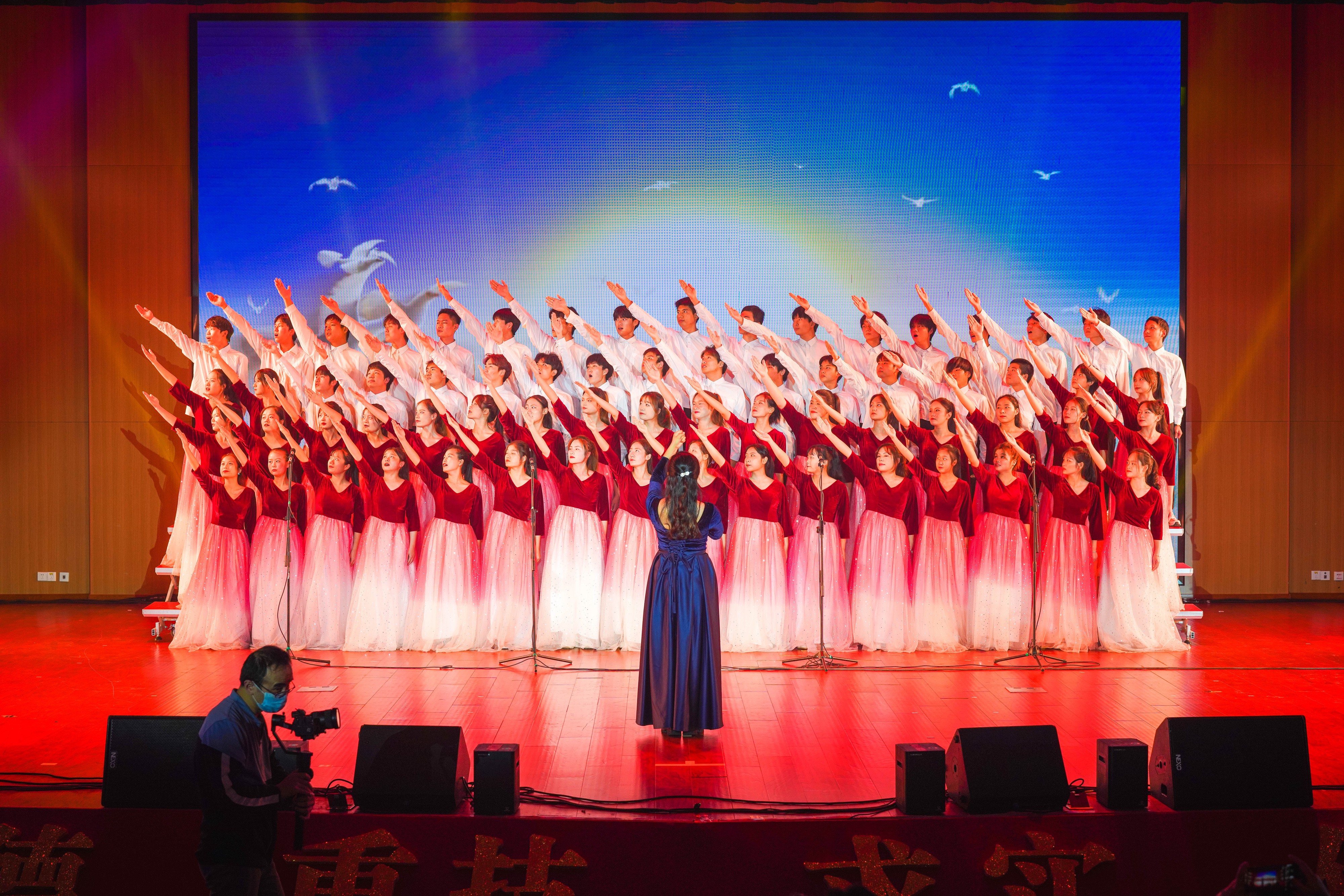 演出在《走向复兴》的大合唱中拉开序幕,来自信息工程与传媒学院的师生们用动人的旋律讲述了合职与祖国共同成长的二十年历程,用嘹亮的歌声唱响了伟大祖国复兴之路的青春之歌。