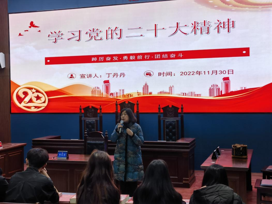 丁丹丹老师带领全体成员学习党的二十大精神及关于全面依法治国的相关内容