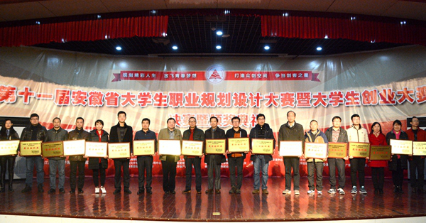 省教育厅副厅长解平到会并讲话,省人力资源和社会保障厅副厅长刘少华等有关领导到会并为获奖选手颁奖。解平首先向获得“安徽省大学生职业规划之星和创业之星”的各位同学表示祝贺。他指出,举办本次大赛目的是进一步普及大学生职业生涯知识和创业知识,培养大学生创业意识,提高大学生就业创业能力,促进大学生就业创业。希望各高校以大赛为契机,落实各项优惠政策,提供精准指导服务,千方百计为大学生创客们排忧解难,努力推动高校毕业生实现更高质量的就业。