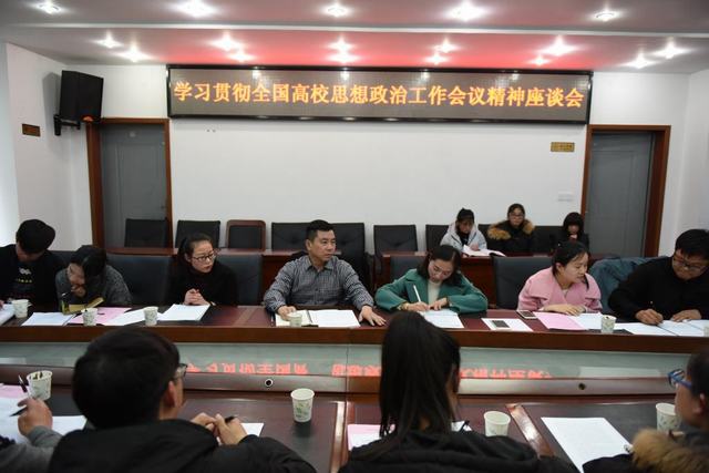 2016年12月7日至8日,全国高校思想政治工作会议在北京召开,中共中央总书记、国家主席、中央军委主席习近平出席会议并发表重要讲话。为深入学习贯彻落实会议精神,12月14日晚,院党委副书记胡其云在行政楼三楼会议室主持召开“学生干部全国高校思想政治工作会议精神学习座谈会”,学生处、团委及各院(系)学生会主席团成员等20余人参加会议。