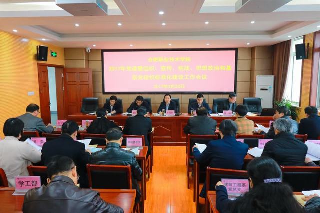 会议首先书面传达了全市组织部长会议、宣传工作会议和全市统战部长会议精神,并下发了学院2017年党建工作计划、宣传思想、统战、大学生思想政治教育工作要点和推进基层党组织标准化建设实施方案。会议要求各党总支、各单位要认真组织学习,结合工作实际,严格贯彻落实。