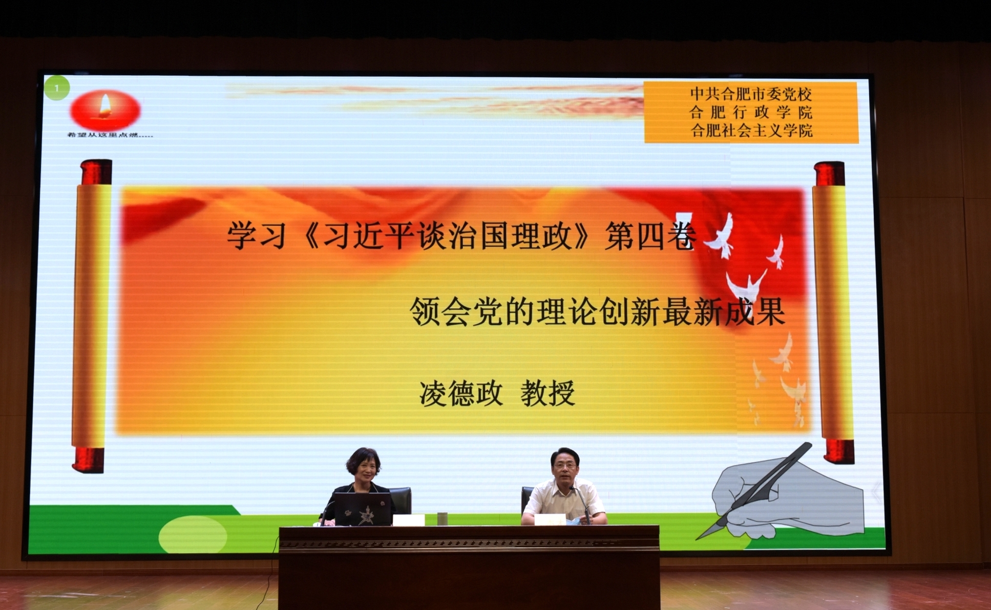 为深入学习《习近平谈治国理政》第四卷,系统领悟习近平新时代中国特色社会主义思想,迎接党的二十大胜利召开,9月21日下午,Beat365举办了《习近平谈治国理政》第四卷专题宣讲报告会暨党委理论学习中心组学习会,会议由党委书记王杰才主持,邀请了合肥市委党校党史党建教研部凌德政主任担任主讲人,校领导班子成员、全体副科级以上干部、马克思主义学院全体教师、学生入党积极分子代表参加学习会。