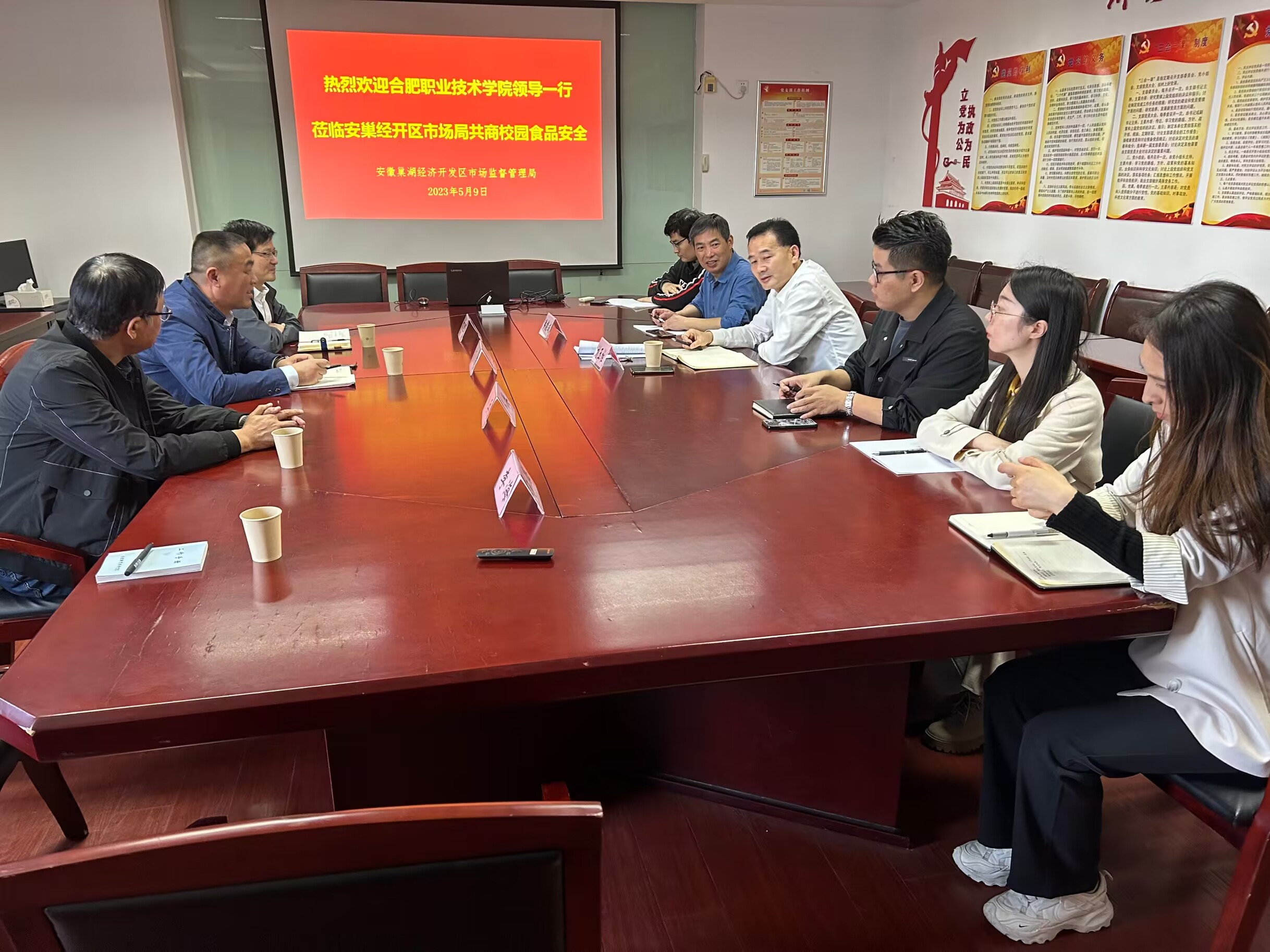 为贯彻落实《企业落实食品安全主体责任监督管理规定》(国家市场监督管理总局令第60号),进一步提升学校食品安全治理水平,降低校园食品安全风险 ,保障在校师生的餐饮卫生安全,积极探索食品安全共治共享,加强“校地”双方食品安全合作,推动食品安全“两个责任”落实落地落细,5月9日和10日,范家茂副校长带领总务处负责同志分别赴安巢经开区和新站高新区市场监督局进行走访,双方就园区食品安全状况、学校食堂管理、在校师生健康安全等进行了交流并达成共识,学校食品安全是重大民生问题,事关广大师生身体健康,事关千家万户家庭幸福,事关社会和谐稳定,双方将加强共治共享,防范化解食品安全重大风险,切实保障广大师生“舌尖上的安全”。