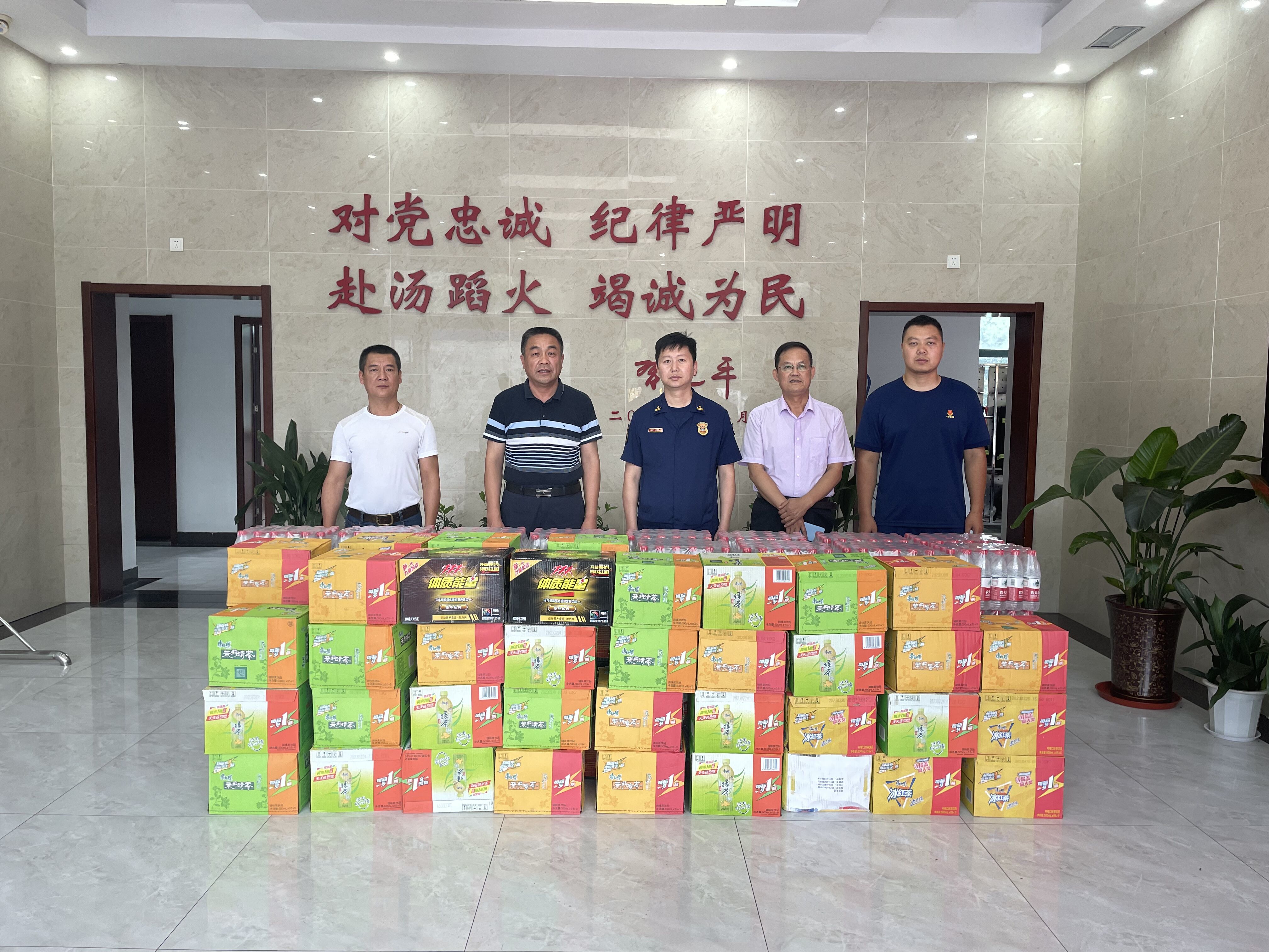 6月19日,在“七一”建党节到来之际,学校党委委员、副校长范家茂携保卫处处长谭连生等同志赴安巢经开区消防大队向坚守岗位、奋战一线的消防救援人员送去矿泉水和功能饮料,代表全校师生为他们送去慰问。