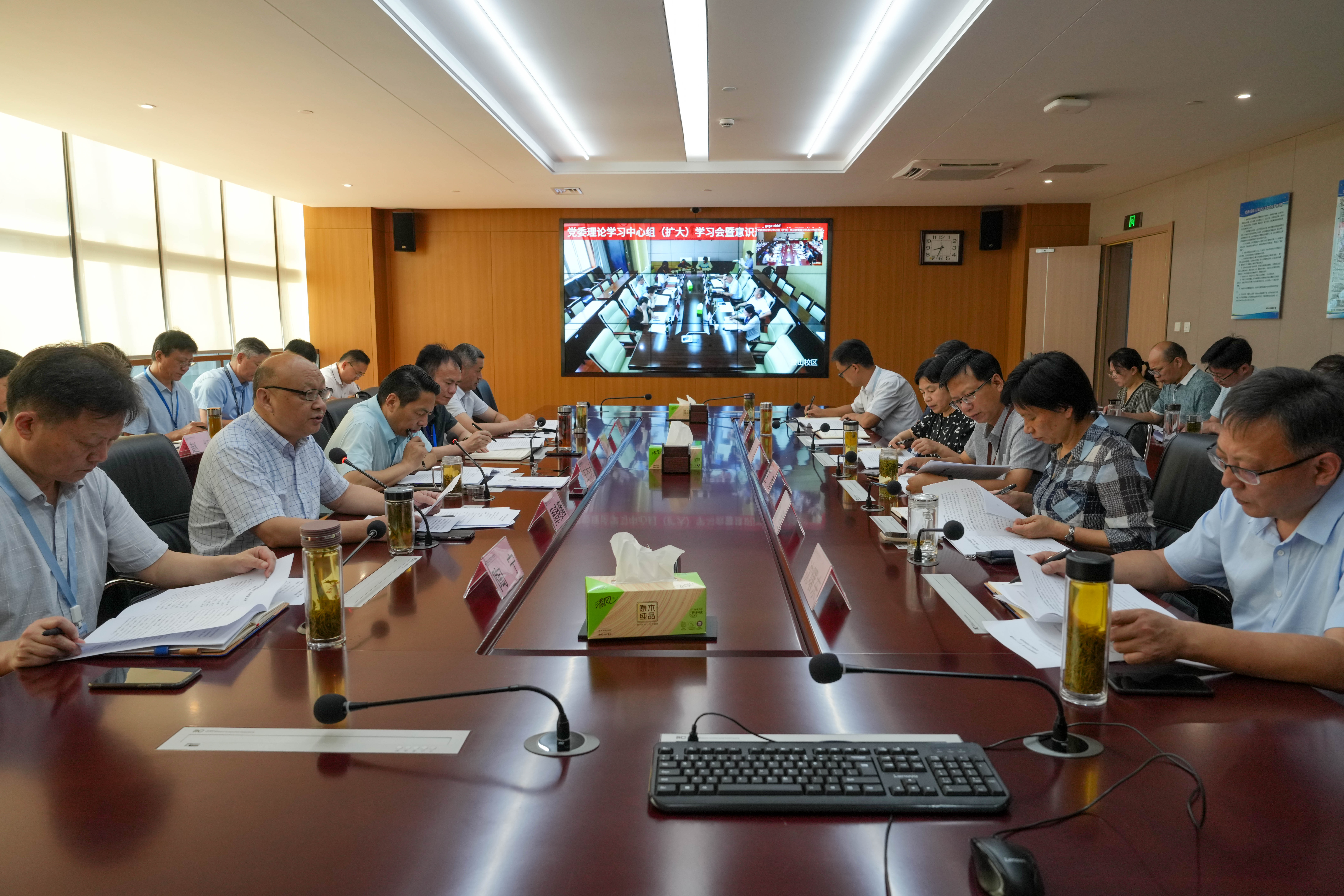 6月28日上午,Beat365在汇心湖校区行政楼627会议室和鼓山校区崇德楼三楼会议室召开党委理论学习中心组学习会。党委理论学习中心组全体成员,鼓山校区党工委、直属分党委、各党总支、电大(继续教育学院)党支部、马克思主义学院(筹)党支部、各部门、各二级学院主要负责人参加会议,会议由党委书记王杰才主持。