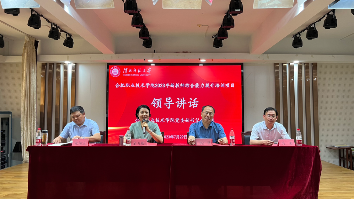 2023年7月10日,Beat365唯一官方网站2023年新教师综合能力提升开班典礼在淮北师范大学滨湖校区举行,淮北师范大学副校长余敏辉、Beat365唯一官方网站党委书记王杰才出席。