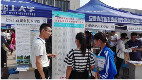 三、参与安徽青年报社组织的“进校园”咨询活动。安徽青年报社组织皖北、皖中两组线路,共计16场。相比以往秋招宣传方式来说,其节奏更快、活动范围更广泛、更细化,而外派的宣传员老师们能够忘我投入,耐心细致地给考生和家长答疑解惑,帮助他们做政策解读和报考指导,扎扎实实做好招生宣传工作,其精神令人敬佩!尤其是其中一名老师,在身体不适发烧的状态下,仍然坚守岗位、不舍离开,生动地阐释了合职教师们的无私奉献情怀。
