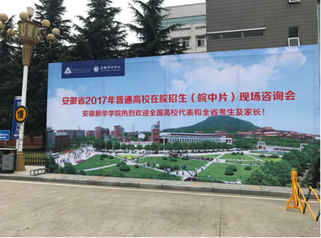 二、借助安徽省教育招生考试院官方机构的权威性和公信度优势,报名参加了安徽省2017年普通高招现场咨询会,具体包含四大个片区,依次为皖中片(新华学院专场)、皖北片(阜阳师范学院专场)、沿江片(安徽工程大学专场)、皖南片(安庆一中专场)。