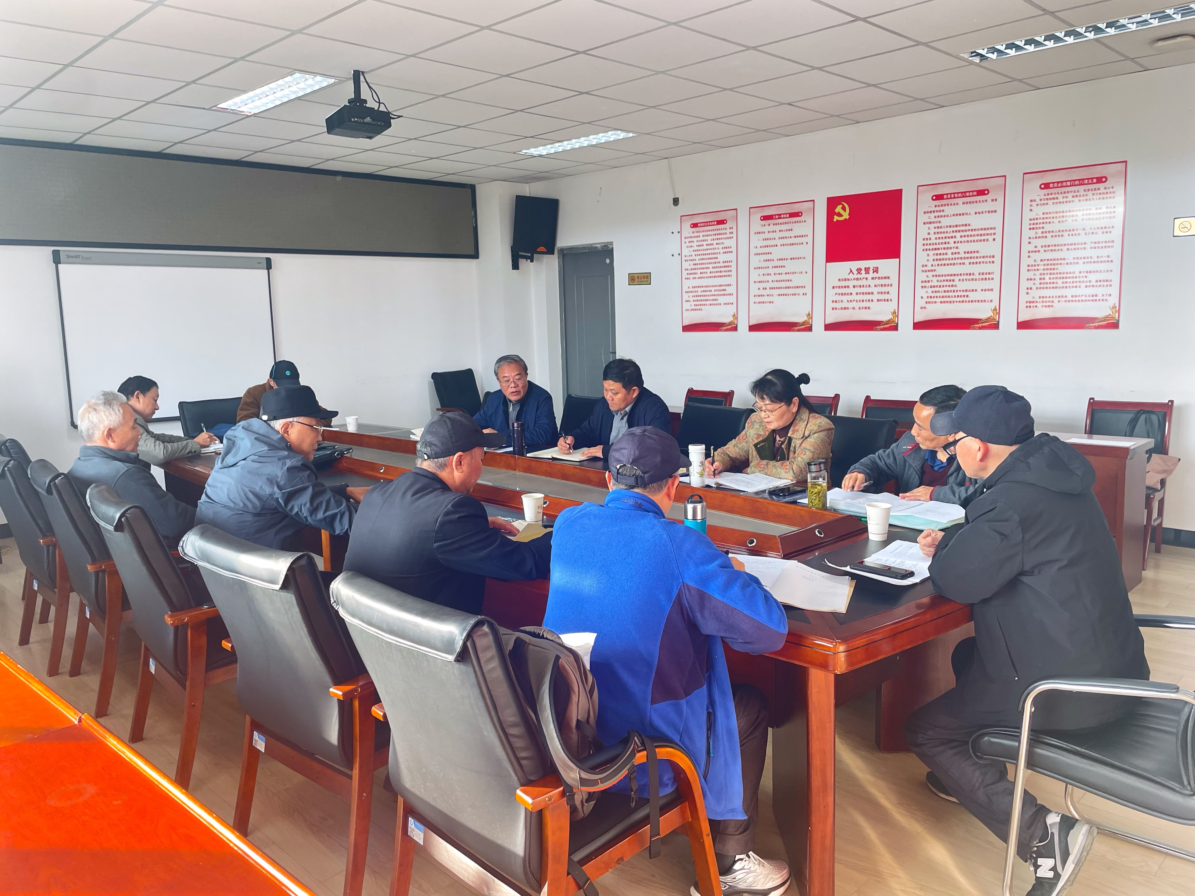 金辉领学习近平《论党的自我革命》中“发挥好基层党组织战斗堡垒作用”一节,赵辉领学《习近平新时代中国特色社会主义思想的世界观和方法论专题摘要》有关论述。五位支部书记分别介绍了各支部主题教育开展情况、突出特色与亮点,并对学校离退休人员主题教育的开展提出意见与建议。大家一致表示,虽然退休了,但时刻听从党的召唤,活到老,学到老。