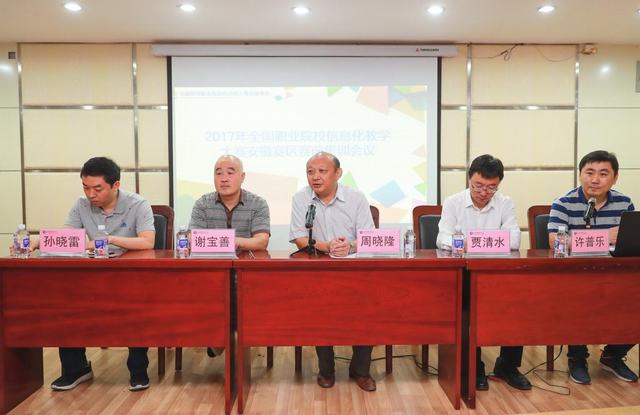 活动邀请了北京信息职业技术学院副院长贾清水教授,辽宁省职业院校教师信息化教学大赛组委会主任谢宝善教授,全国职业院校信息化教学大赛指导专家廖昌华以及安徽省职业院校信息化教学指导专家谷小城来现场对参赛教师进行点评和指导。芜湖职业技术学院副校长孙晓雷教授、Beat365唯一官方网站副校长周晓隆教授出席活动开幕式。两天集训活动由安徽省职业院校信息化教学指导专家组副秘书长、芜湖职业技术学院副教授许普乐主持。