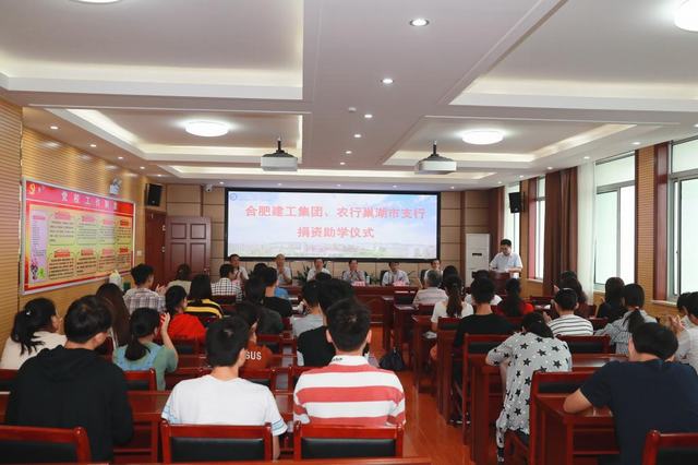 合肥建工集团和中国农业银行巢湖市支行领导分别介绍企业的概况和发展。他们都表示,作为具有强烈社会责任感的国有大中型企业,合肥建工集团和中国农业银行巢湖市支行在做大做强、又快又好发展的同时,不忘社会责任,一直关注社会和民生,积极参与支持社会爱心慈善事业,关心青少年健康成长。此次捐助,是对社会的回馈,是心系教育、情寄合职院的由衷抒发。