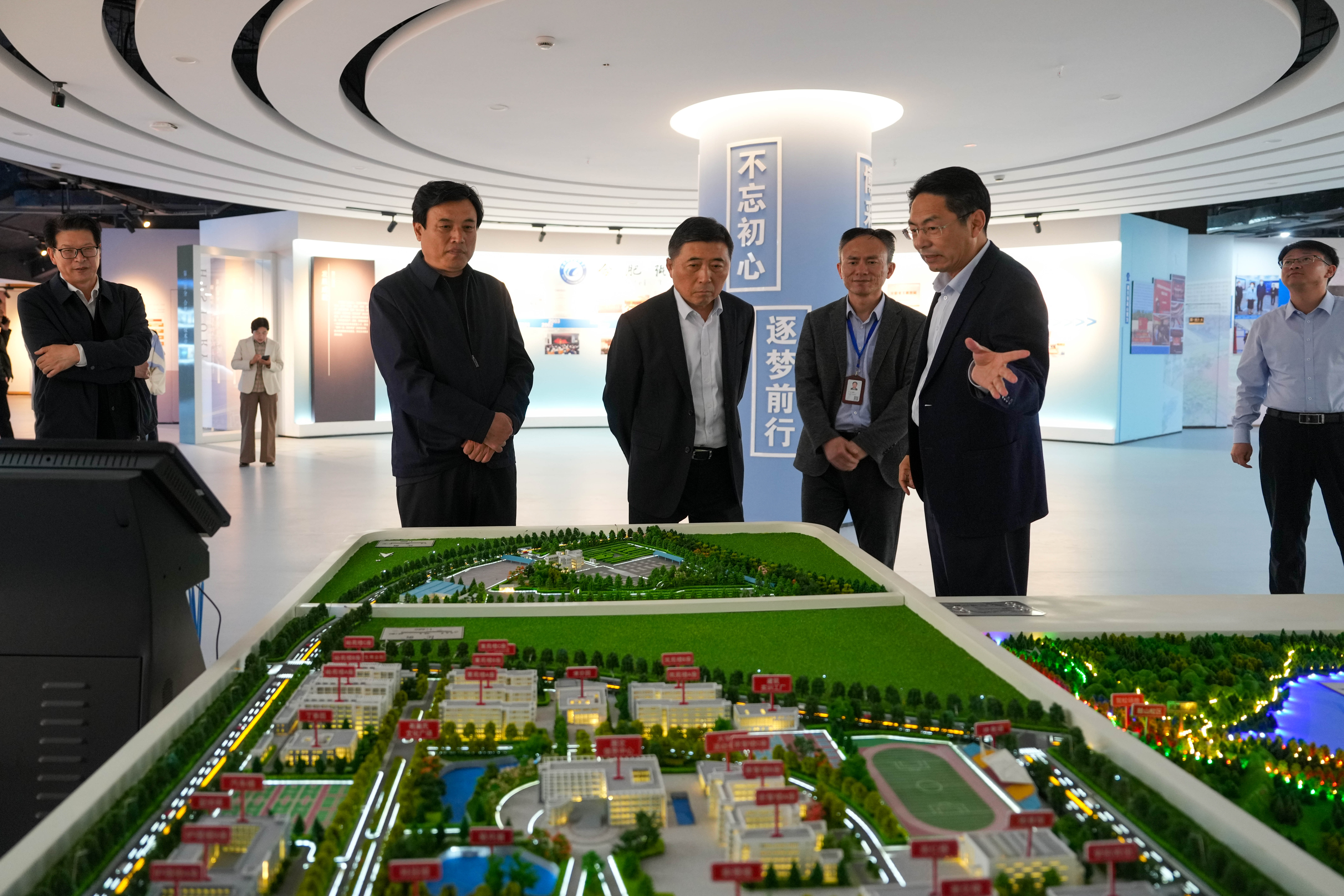 谢海涛一行听取了王杰才、檀明关于学院总体情况和改革发展重大举措的介绍,实地参观了校园景观及校史馆、轨道交通学院、机电工程学院实践教学场所,并就学科专业布局、人才培养方案、专业团队建设、学生就业方向、办学条件提升等内容与学院负责同志进行了座谈交流。交流还围绕职业教育发展方向、对标服务合肥的产业布局、产教融合、教学团队能力建设等展开了讨论。