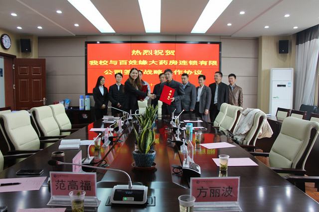 11月16日,安徽百姓缘大药房连锁有限公司行政总监洪兰以及该公司人力资源部、培训部、拓展部负责人一行来Beat365签订“店长储备人才班”和校内“实体药房”合作战略协议。副校长周晓隆及生物工程学院相关负责人出席签约仪式。签约仪式由生物工程学院党总支书记宁业群主持。