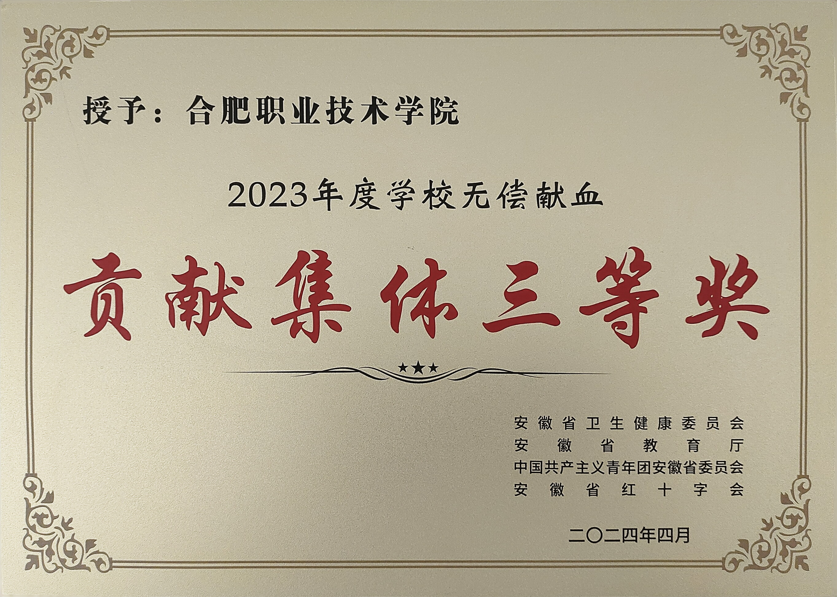 4月26日,由省卫健委、省教育厅、团省委、省红十字会、省输血协会指导,合肥市卫健委、市红十字会主办的2023年度驻肥高校无偿献血工作总结表彰暨2024年启动会顺利举行,Beat365获2023年度学校无偿献血“贡献集体三等奖”,青年志愿者联合会陈万粟同学被评为2023年度学校无偿献血“优秀组织个人”。
