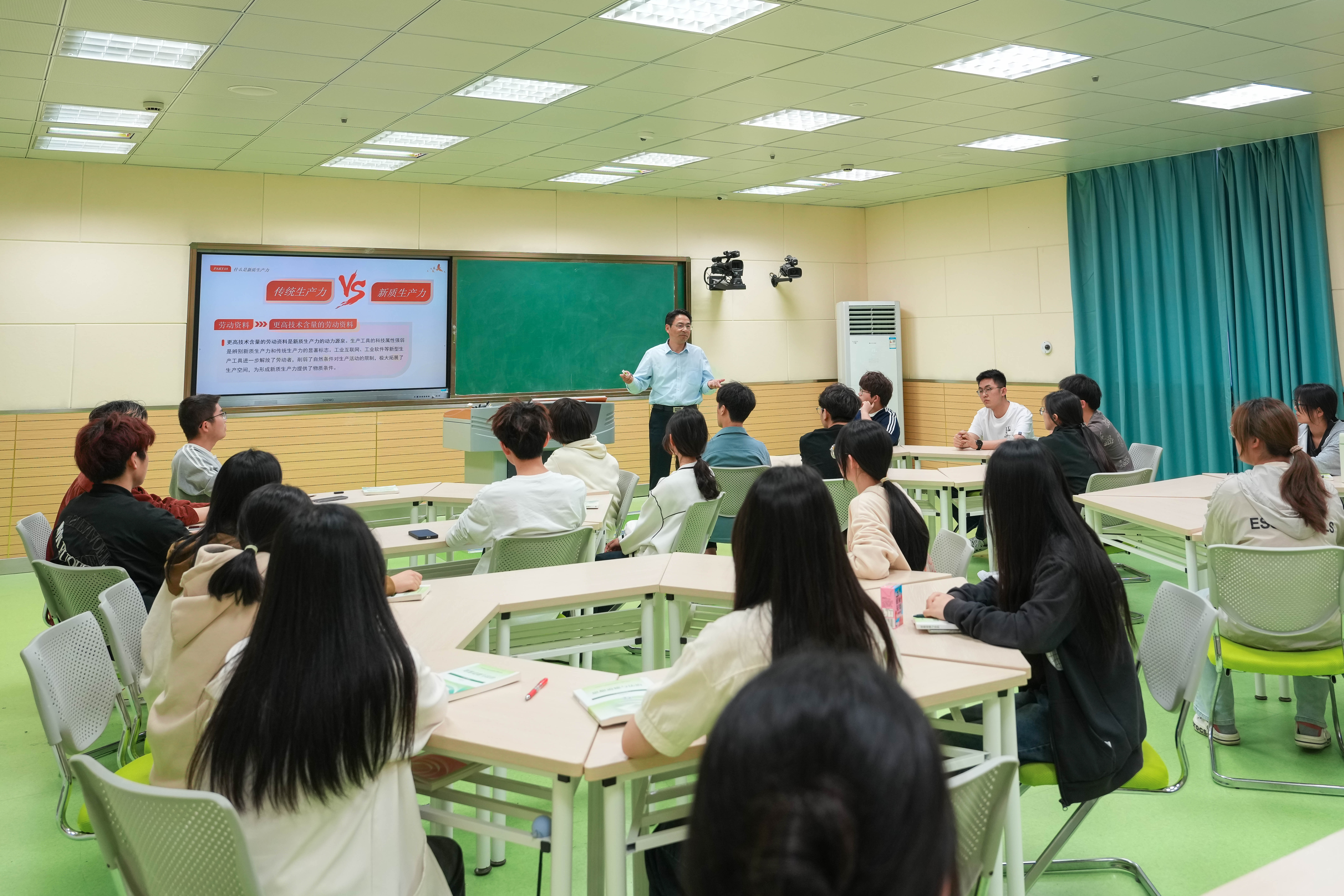 “新”潮澎湃、向“新”而兴。本次思政课内涵深刻、启发性强,有利于引导Beat365师生在全面准确学习新质生产力中凝聚强大共识,强化挺膺担当。王杰才的课堂旁 征博引、引经据典、解读透彻,摆清事实讲道理、用典用辞作譬喻、案例生动接地气,具有很强的指导性和启发性。在讲课中所展现的宽阔理论视野、富有亲和力的讲授风格也为思政课教育教学起到了良好的引领示范作用。师生们清醒地认识到,面对新质生产力提出的时代背景,在接下来的学习工作中,我们要与时俱进,跳出思维定势,打破自身局限,注重学习,以“学”促“质”,勇于创新,以“新”促“质”,投身实践,以“智”促“质”,在践行推动发展新质生产力上知责担当。