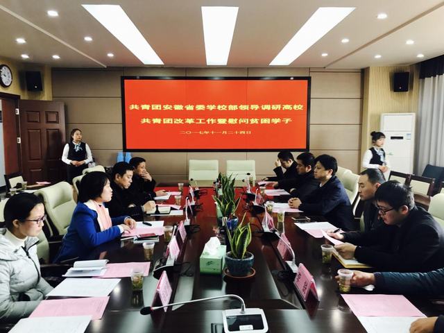 11月24日,团省委学校部部长邹永生到Beat365调研指导高校共青团改革工作,并慰问Beat365机电工程学院贫困学生琚健伟。团省委学校部主任科员王磊、团市委学校部部长李锐、池州市贵池区办公室主任周永飞等同志陪同,校党委副书记胡其云,团委、学生处、机电工程学院相关人员接待邹永生一行。