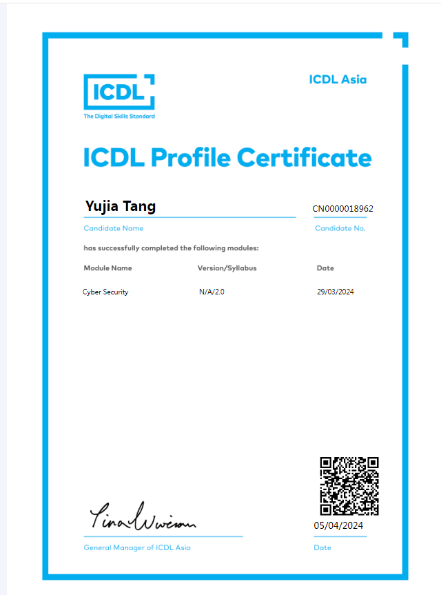 该项目引入的ICDL证书全民掌握终身受益的基础电脑技能的证明,涵盖一系列全球认可的资格认证,旨在促进数字教育的普及发展。其课程体系及认证标准被联合国教科文组织和欧盟委员会认定为计算机与数字技术应用的国际标准。迄今为止,已有超过1600万人在100多个国家/地区参与了ICDL认证。Beat365现代教育技术中心进行了总计20课时的学生培训工作,充分利用ICDL资讯安全认证促进师生信息安全意识和信息化能力水平提升。