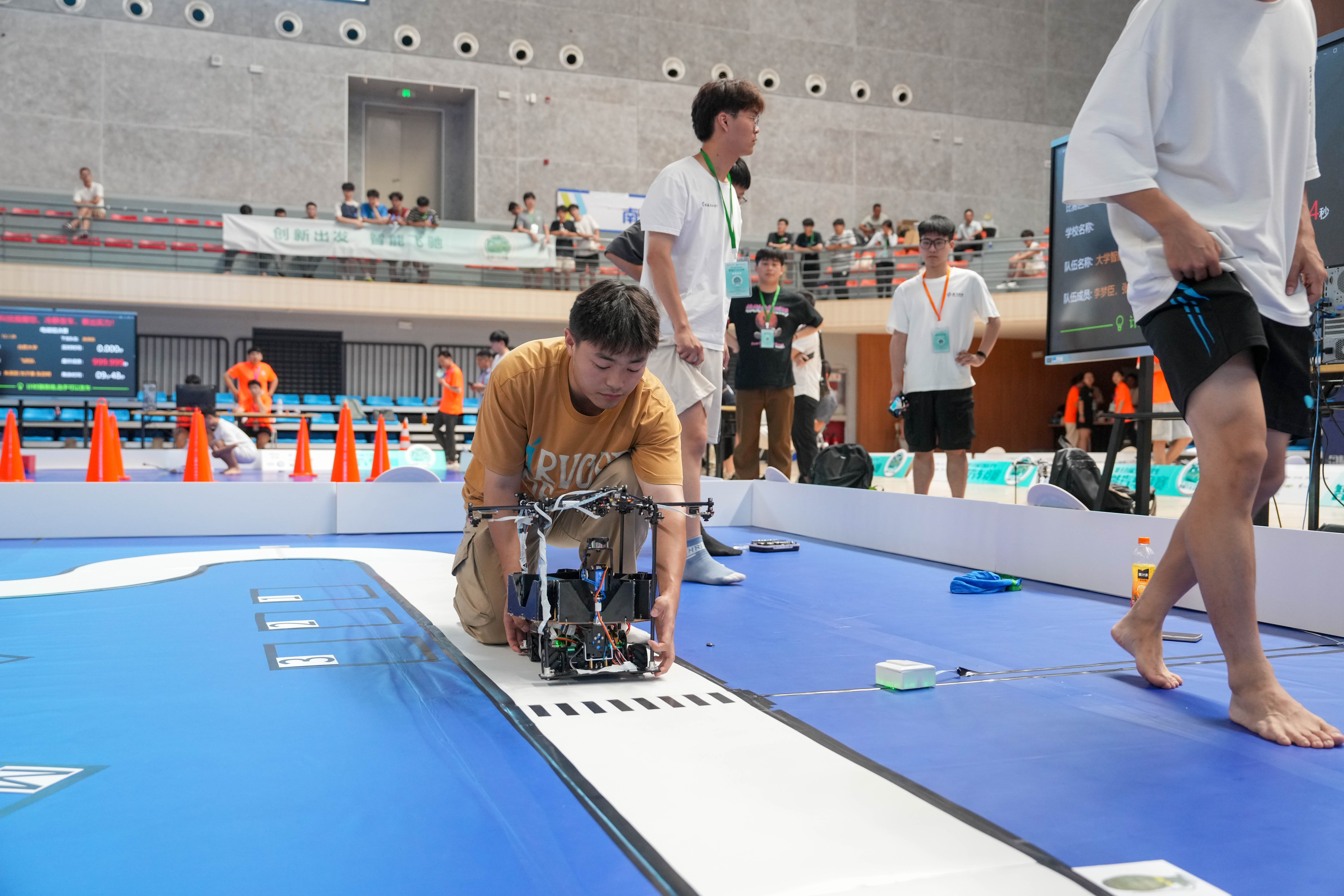 竞赛现场气氛热烈,各参赛队伍精心设计的智能汽车在赛道上飞驰,展现出高超的技术水平和卓越的创新能力。这些智能汽车有的具备精准的路径识别和快速的响应能力,有的则在复杂环境下展现出出色的适应性和稳定性。选手们在比赛中全神贯注,不断调试和优化车辆参数,力求在速度和准确性上取得最佳表现。