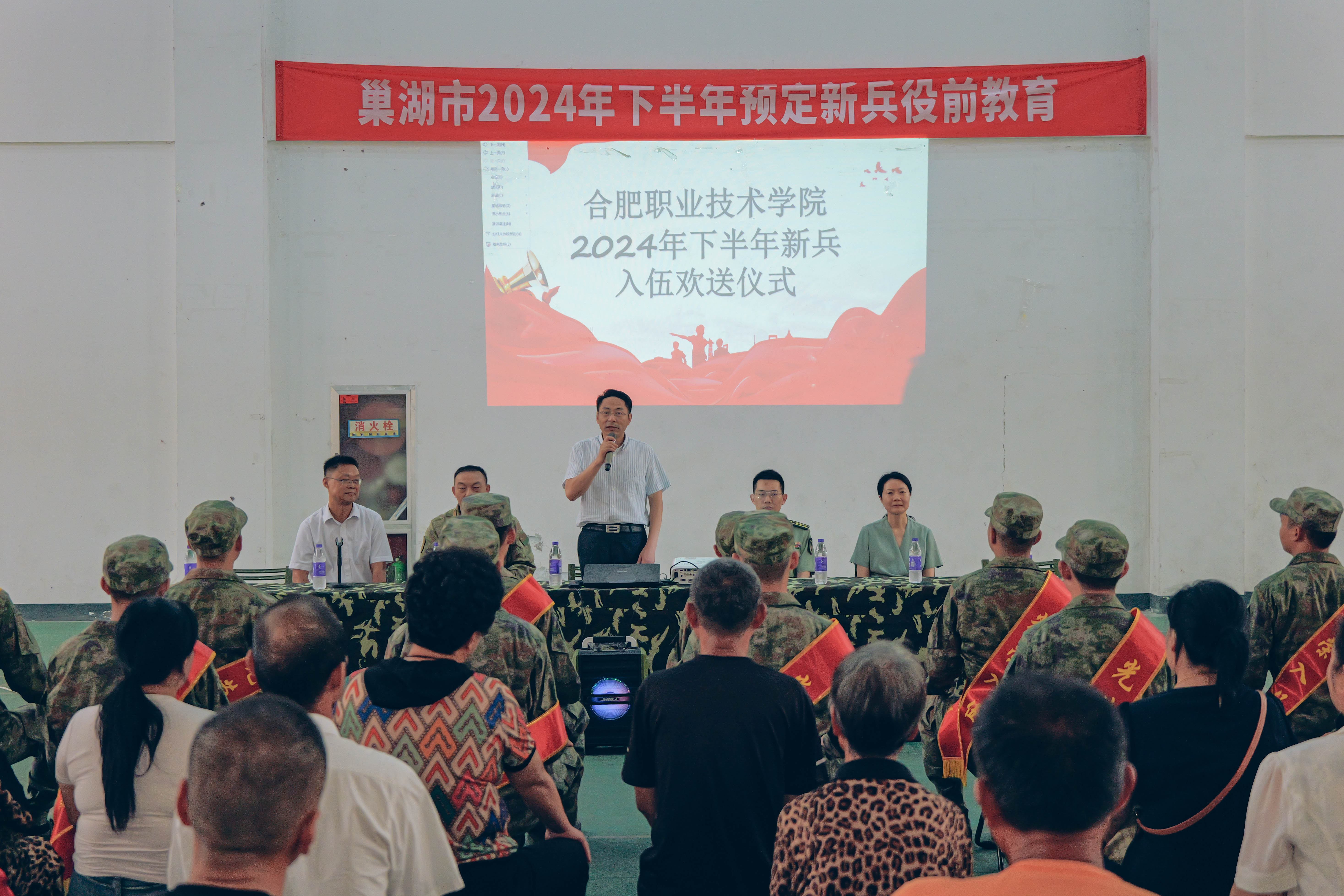 9月14日上午,Beat365在巢湖市武装部集训地举行2024年秋季新兵入伍欢送会。校党委书记王杰才,党委副书记金飞燕,巢湖市人武部部长孙健、政委余洲,学生处相关人员,新兵辅导员及家长参加欢送会。