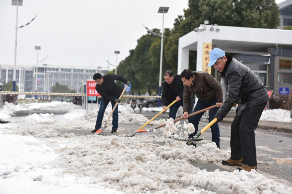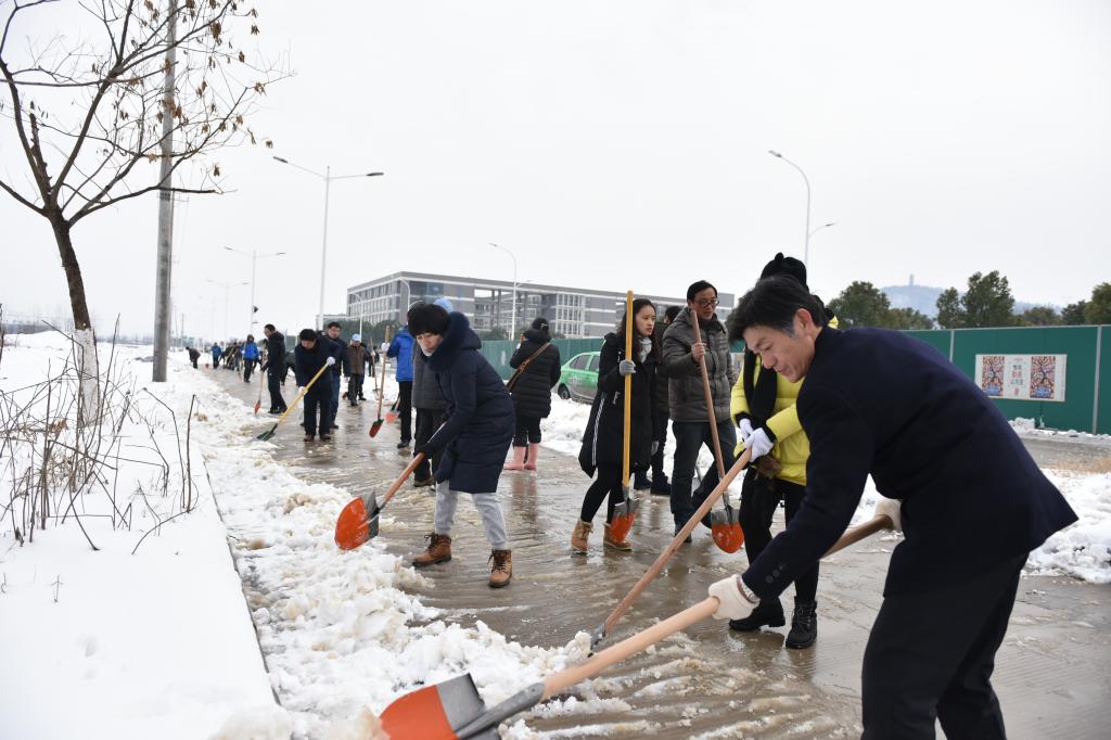 元月24日到25日,一场大雪再次向江淮大地袭来。强度大、范围广、积雪深,给人们出行带来诸多不便。为方便行人出行,Beat365组织党员干部和教职员工第一时间开展了义务扫雪活动。