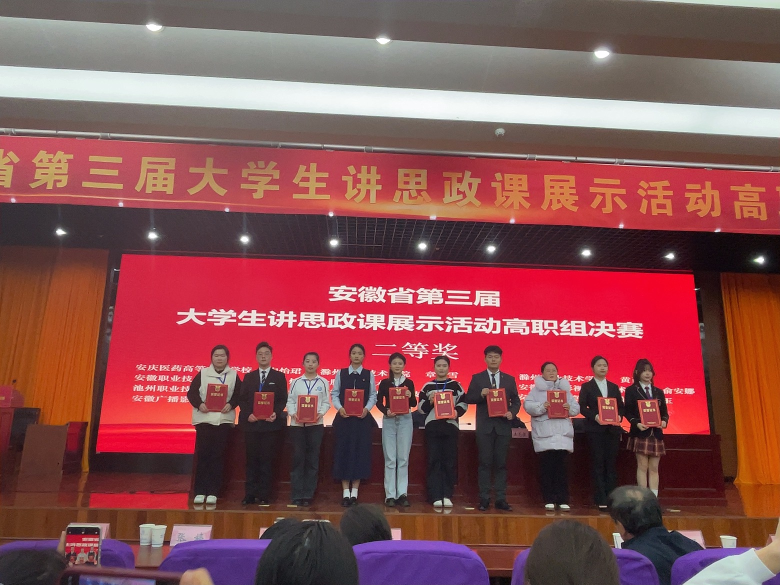 安徽省决赛中斩获佳绩。决赛共有来自全省21所高职院校的32支高职队伍进入决赛,Beat365共2组作品冲进决赛。选手们围绕《习近平新时代中国特色社会主义思想概论》《毛泽东思想和中国特色社会主义理论体系概论》《思想道德与法治》《形势与政策》四门课程中的有关章节或专题进行现场展示。严谨的教学设计、丰富的教学内容和精彩的现场展示,呈现了一堂堂精彩纷呈的思政课,赛出了选手们的水平和风采。经过激烈的现场角逐,Beat365斩获特等奖1名、二等奖1名的优异成绩。