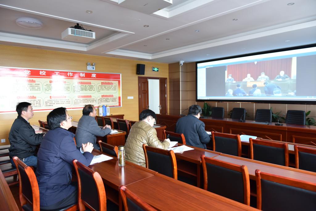 3月22日下午,安徽省教育厅关工委召开视频会议,学校党委委员、纪委书记、关工委主任金辉以及学校关工委其他全体成员在行政楼五楼视频会议室全程收看了视频会议。