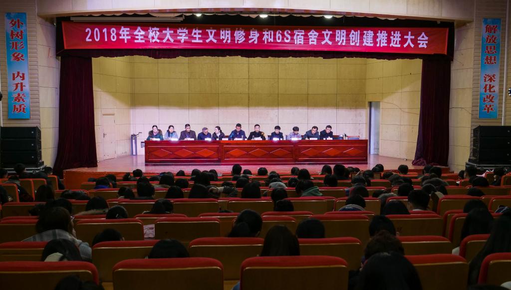 3月20日下午四时整,Beat365在大学生活动中心礼堂召开大学生文明修身和“6S”宿舍文明创建工作推进大会,学校党委副书记胡其云,宣传部(文明办)、学工部、团委相关工作人员,总务处及物业办负责人,各二级学院党总支书记、副书记、全体专职辅导员和在校班级班主任,全体学生党员、入党积极分子和校、院主要学生干部,寝室长代表等共同参加了会议。会议由学生处处长高恒平主持。