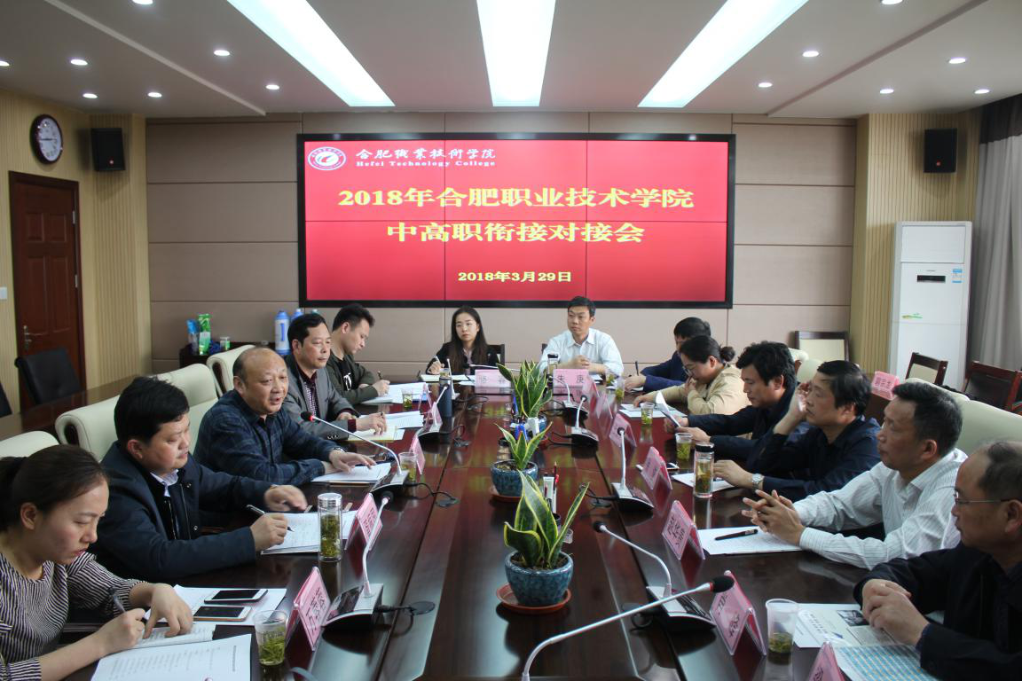 为进一步搭建职业教育立交桥,推进中高职衔接,3月29日下午,Beat3652018年中高职衔接工作会议在行政楼三楼会议召开。合肥经贸旅游学校、合肥工业学校、合肥经济贸易科技学校、合肥理工学校、合肥市工程技术学校、黄麓师范学校等6所市属中职学校领导、教务主任来到Beat365洽谈中高职衔接事宜。副校长周晓隆、教务处处长宋风长、副处长胥振国等参加会议。会议由宋风长主持。