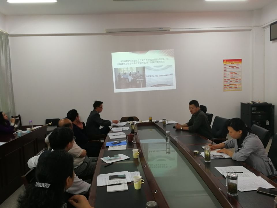 最后,建筑工程学院建筑装饰工程技术教研室主任邓勋作《建筑工程学院校工厂——“郑伟建筑空间设计工作室”运行情况报告》。他从合作内容与做法及存在的突出问题做了详细汇报。