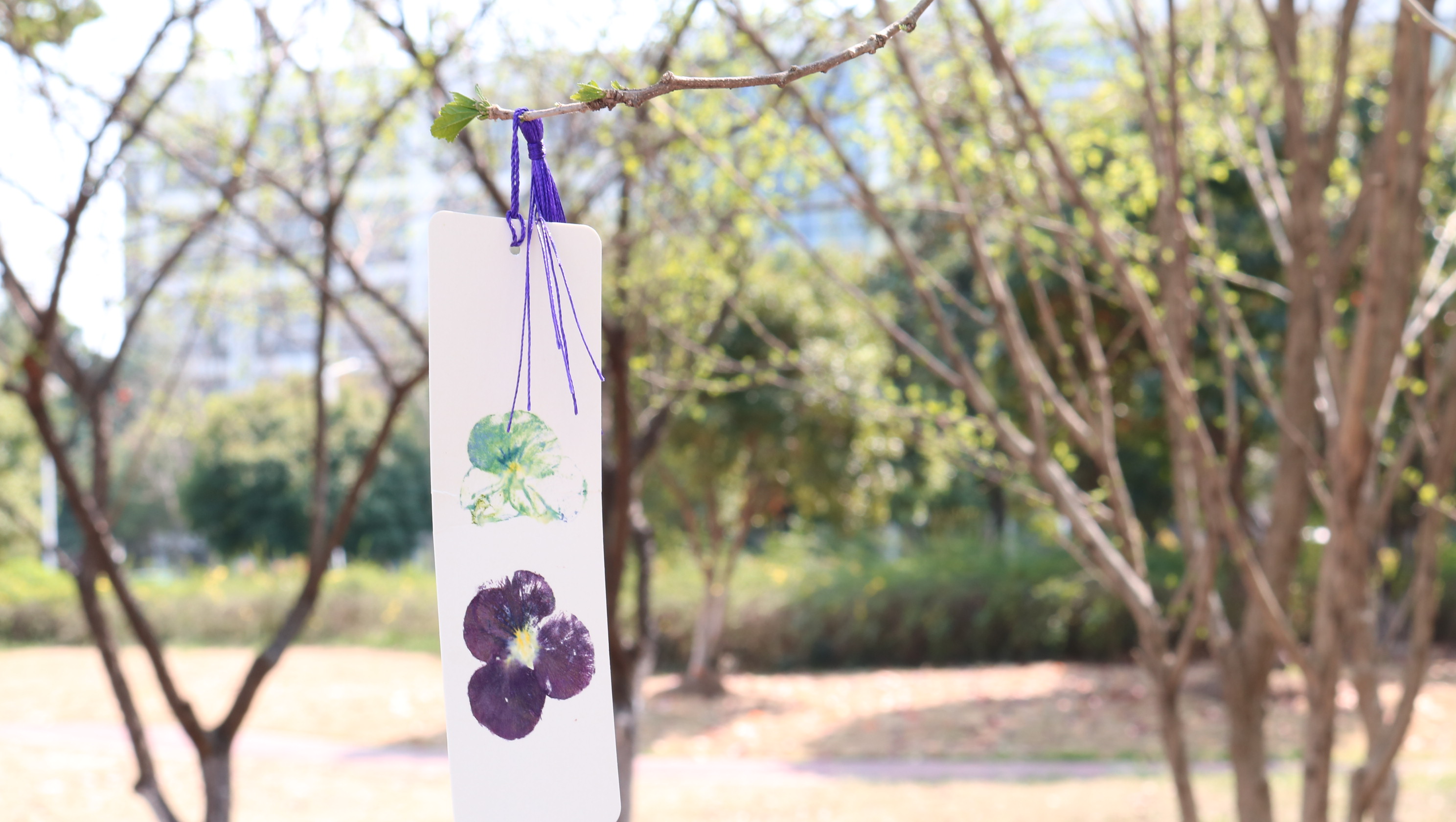 拓花印自然——古法拓印。“草色锤染身上衣,映红犹闻彩花香”,这是植物拓印的全过程。拓印又称锤染和敲染,是运用敲打拍击来进行染色的传统印染方式。现场,同学们在洁白的帆布包表面放上各种不同形状、颜色的树叶以及娇柔的花朵,利用小木槌进行物理敲击,使植物的汁液深入织物,从而留下大自然最本真的色彩、形态与脉络。