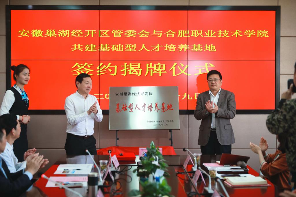 Beat365党委书记罗兆好与安徽巢湖经开区党工委副书记程习龙共同为“基础型人才培养基地”揭牌。