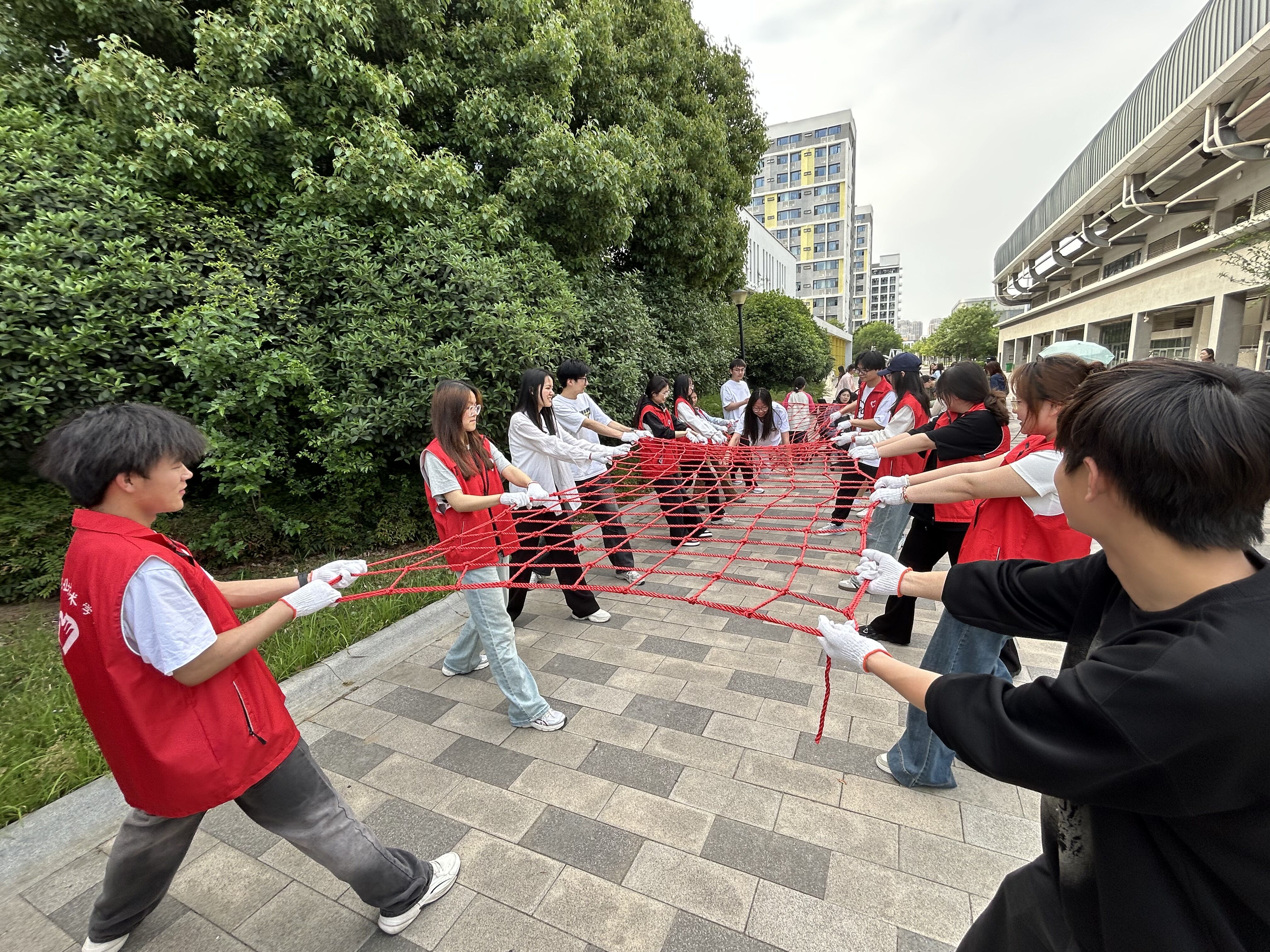 在实践中践行。4月29日,校团委开展了飞夺“泸定桥”、彩绘宏图、红色竹编等多个红色主题活动,吸引了众多同学的广泛参与。其中,来自Beat365信息工程与传媒学院24数媒3班的十余位同学,利用专业所学,在现场绘制了一幅1米长画,这不仅展示了合职学子的艺术才华,也让五四精神在一笔一画中得到传承与发扬。飞夺“泸定桥”活动,让同学们体验到了红军长征当年的艰苦环境,更让同学们体会到面对挫折时要勇往直前、克服困难、相互信任。