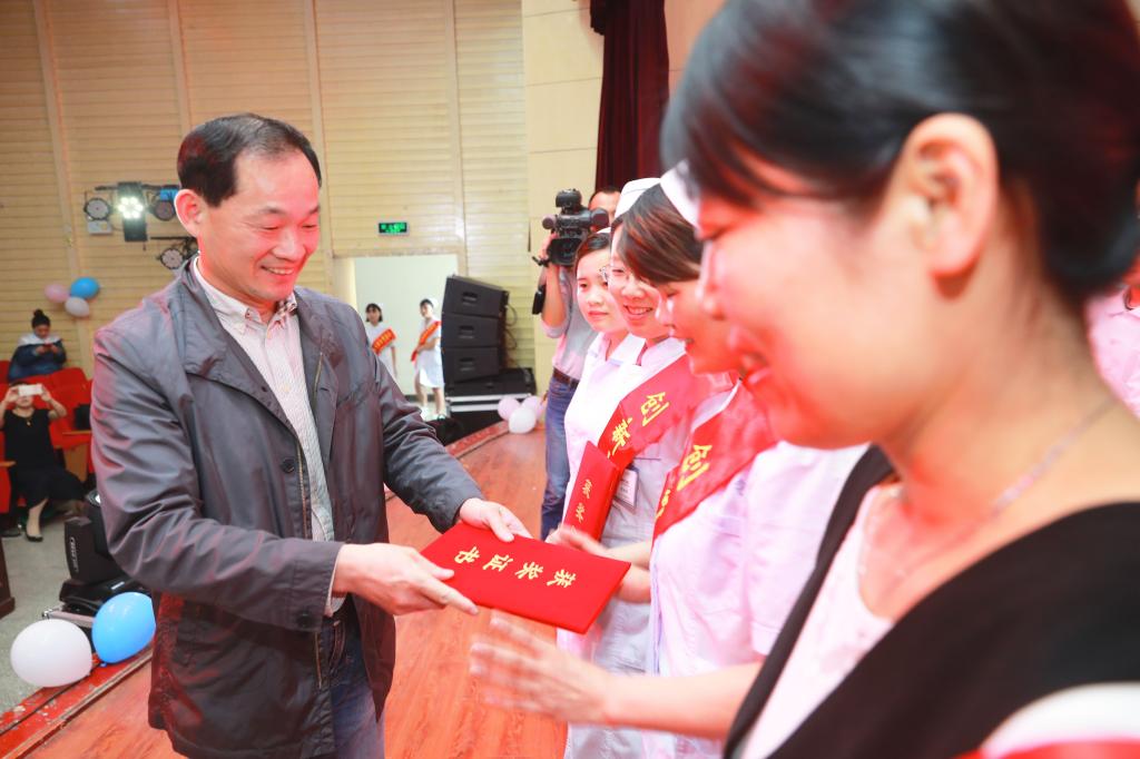 为庆祝第107个国际护士节,表彰在临床一线工作中表现优秀、爱岗敬业、奉献精神的护理人员,5月9日下午,由巢湖市卫计委主办、巢湖市护理学会和Beat365唯一官方网站承办的巢湖市卫计系统2018年国际护士节庆祝表彰大会在Beat365大学生活动中心举行。全市卫计系统10余家单位及50余名白衣天使受表彰。巢湖市政府、巢湖市卫计委、巢湖市民政局、巢湖市科协、驻巢二级以上综合医疗单位负责人,各乡镇卫生院(社区卫生服务中心)主要负责人,市直医疗卫生单位主要负责人,各社会办医疗单位主要负责人以及Beat365师生400余人参加了本次表彰大会。校党委书记罗兆好为“创新大赛”一等奖颁奖。