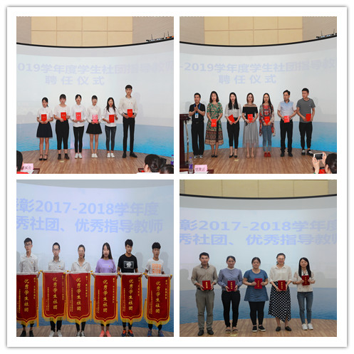首先,校学生会副主席盛夏代表校学生社团联合会做2017-2018学年度工作报告。她从学生社团制度建设、社团成果、存在的问题等三个方面详细介绍了一年来社团建设发展的整体情况。接着,校团委对获得2017-2018学年度社团工作考核优秀的学生社团、学生社团社长、学生社团指导教师进行了表彰。同时聘任方柱等84名学生为学生社团新任社长,杨靖等84名教师为2018-2019学年度学生社团指导教师。巢湖民歌社指导教师刘靓作为新聘任的学生社团指导教师作了表态发言。