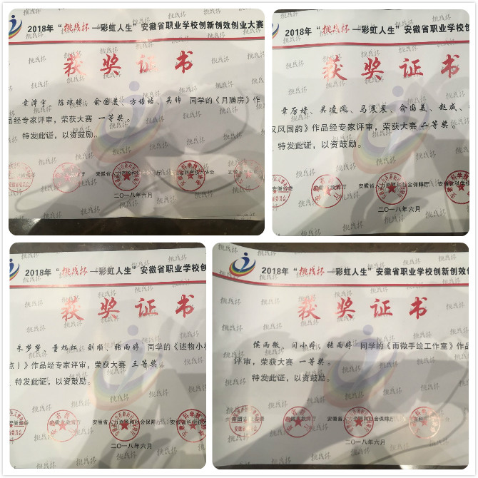 经过激烈的角逐,《月膳房》《雨微手绘工作室》喜获一等奖;《汉风国韵》喜获二等奖;《述物小栈·苏式糕点》喜获三等奖。其中,《月膳房》《雨微手绘工作室》将代表安徽省参加国赛。