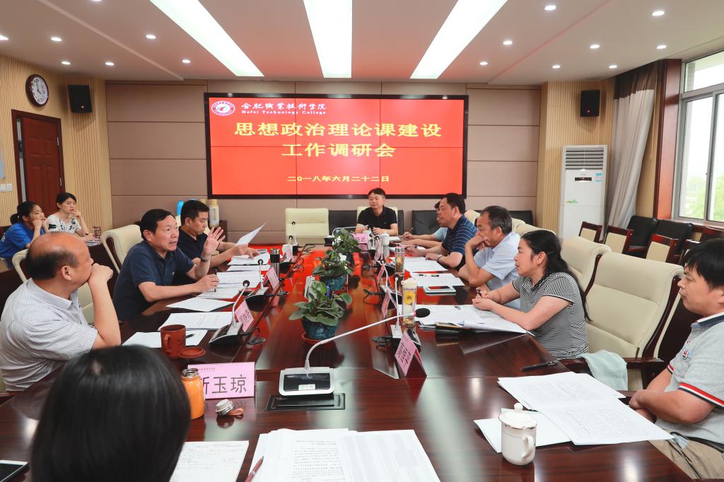 为贯彻落实《教育部新时代高校思想政治理论课教学工作基本要求》和《中共安徽省委教育工委关于开展高校思想政治理论课教师队伍建设专项工作的通知》文件精神,进一步加强和改进思想政治理论课建设,提升思政理论课教师综合素质和专业化水平,打好提高思政理论课质量和水平攻坚战,发挥好思政理论课育人主渠道作用。6月22日下午,Beat365在行政楼三楼会议室召开思想政治理论课建设工作调研会,党委书记罗兆好、副书记胡其云、副校长周晓隆以及相关部门负责人参加会议,会议由罗兆好主持。