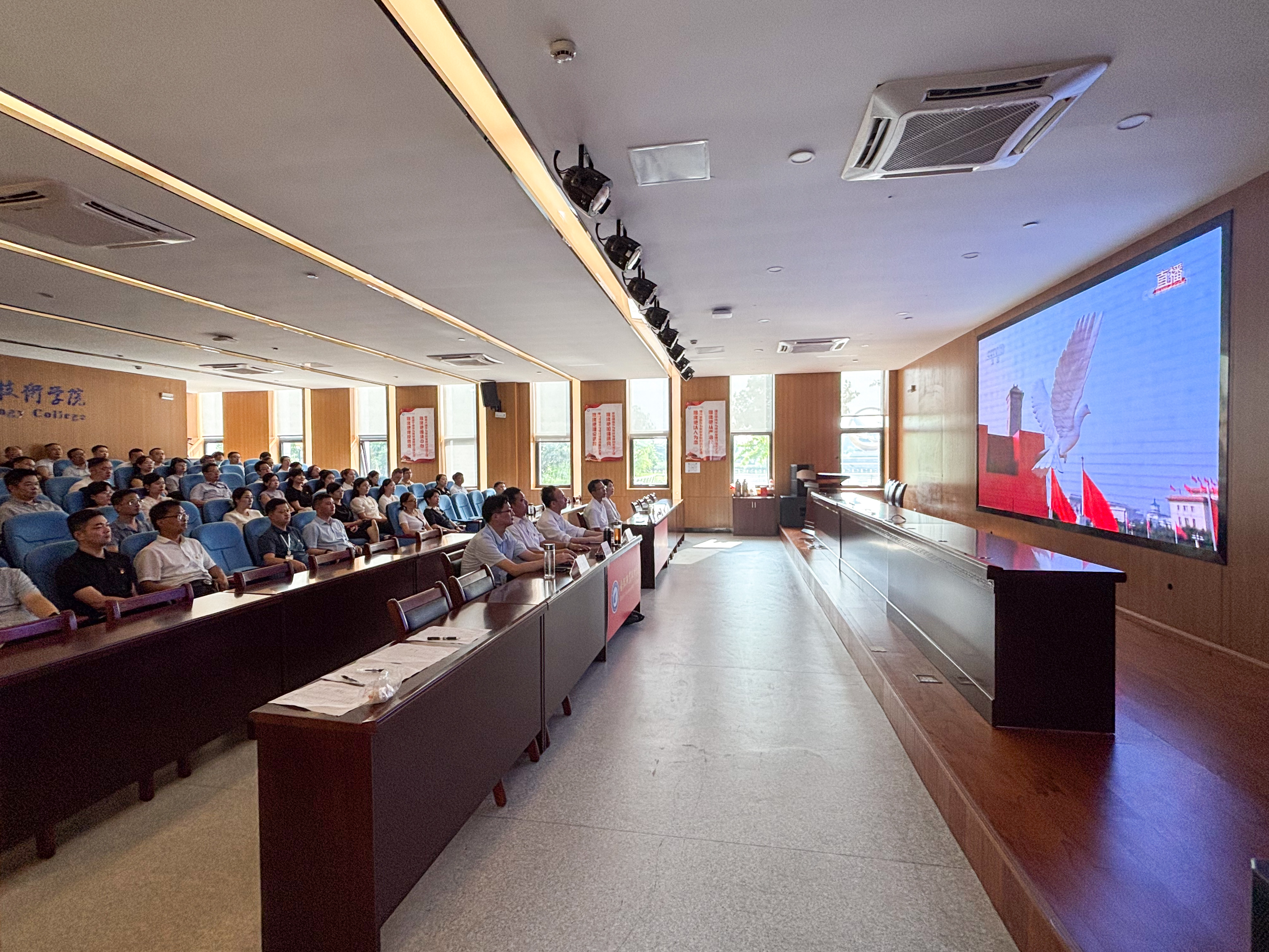 直播过程中,全体人员神情庄重、全神贯注,认真聆听习近平总书记在大会上发表的重要讲话,共同回顾中国人民抗日战争的壮阔历程,深刻感悟革命先辈为民族独立、人民解放挺身而出的崇高精神与坚定信念。