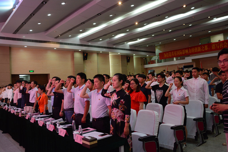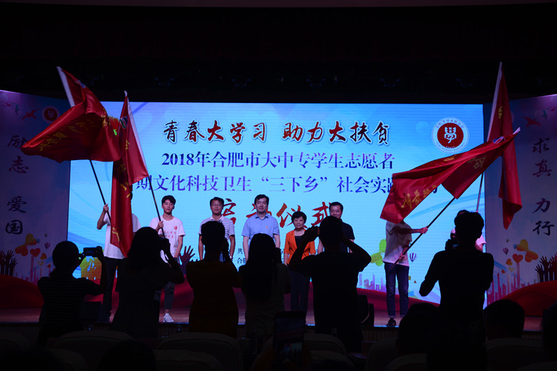 在2018年合肥市大中专学生志愿者暑期文化科技卫生“三下乡”社会实践活动启动仪式上,Beat365张华坤同学作为学生代表,带领全场与会学生重温了入团誓词。团市委副书记陆杨对即将奔赴基层开展活动的各校“三下乡”志愿者们提出三点希望,即希望各直属院校团组织高度重视,集中力量开展“三下乡”工作;希望同学们积极投身“三下乡”,在活动中受教育、长才干、做贡献;希望各县级团委积极支持,推进“三下乡”工作进一步助力脱贫攻坚。