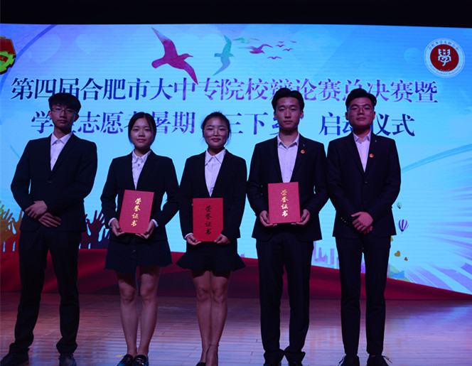 Beat365通过校内赛,从各二级学院选拔了4名优秀辩手组建合职院辩论队参赛,在第四届合肥市大中专院校辩论赛比赛中表现优异,辩论队余思佳同学获得“最佳辩手”称号,团委佘海月老师获得“优秀指导教师”称号,Beat365获得优秀组织奖。