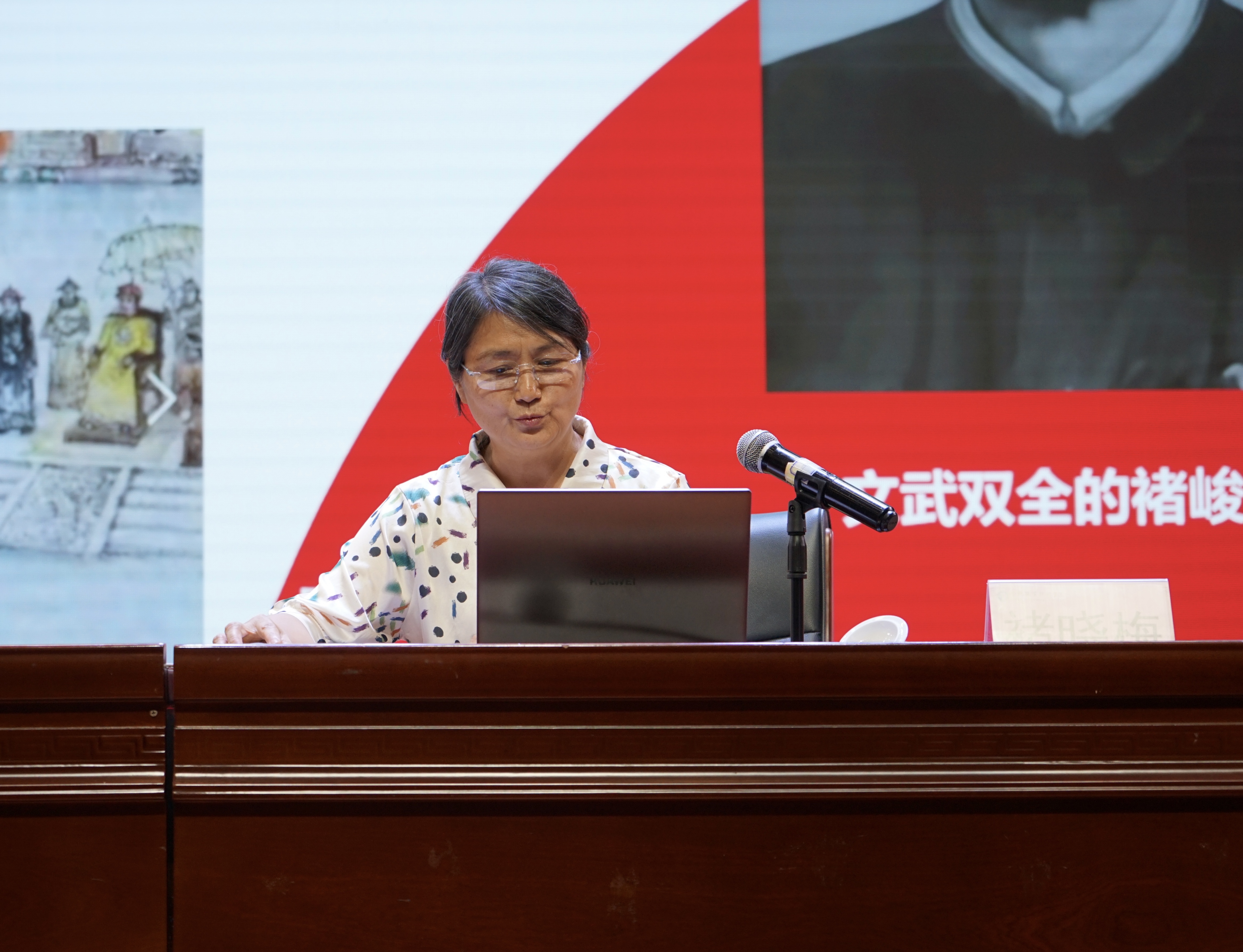 随后,宣讲团成员任宇、褚晓梅、胡晓虹分别作了《桂俊亭:从游击队长到民政厅长》《我的爷爷褚峻斋》《从胡家瓦屋走出来的“党外布尔什维克”和“胡门六烈士”》的报告。他们将人物故事与历史背景深度融合,将英雄先烈在抗战中顽强拼搏、浴血奋战的历史画面具象化,让现场师生仿佛回到那段烽火岁月,感受到革命先辈的信仰与力量。