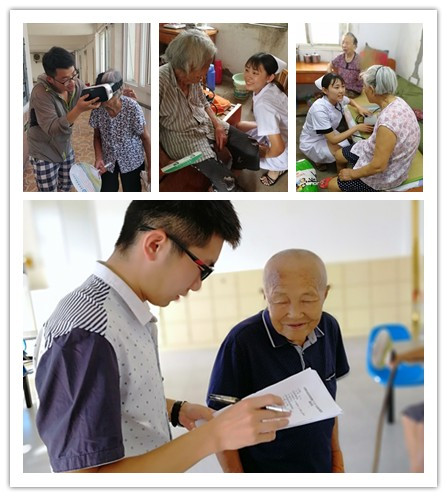 志愿者们顶着烈日,冒着酷暑,到敬老院后,分成护理、陪护、调研三个小组,有序开展活动。护理组的志愿者们为敬老院的老人们认真地测量血压、血糖,耐心地和他们讲解日常健康护理。她们娴熟的技术,热情的态度,让老人们赞不绝口。陪护组的同学们进入行动不便的老人们的房间里,帮助他们整理打扫房间,维修小型电器,剪剪指甲,聊聊天。老人们见到志愿者们都打开话匣子,热烈地聊起来。特别是,志愿者们向他们展示电脑、手机的各种功能时,他们非常好奇和开心。调研组的同学们积极与敬老院负责人和老人们聊天,了解敬老院的运作、老人的生活和情感需求。很多敬老院的老人们握着志愿者的手不停地告诉他们:感谢党和政府,没有他们就没有这么好的日子。老人们真诚的话语、真挚的眼神,深深打动了志愿者们。