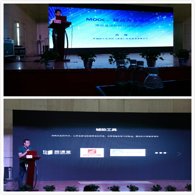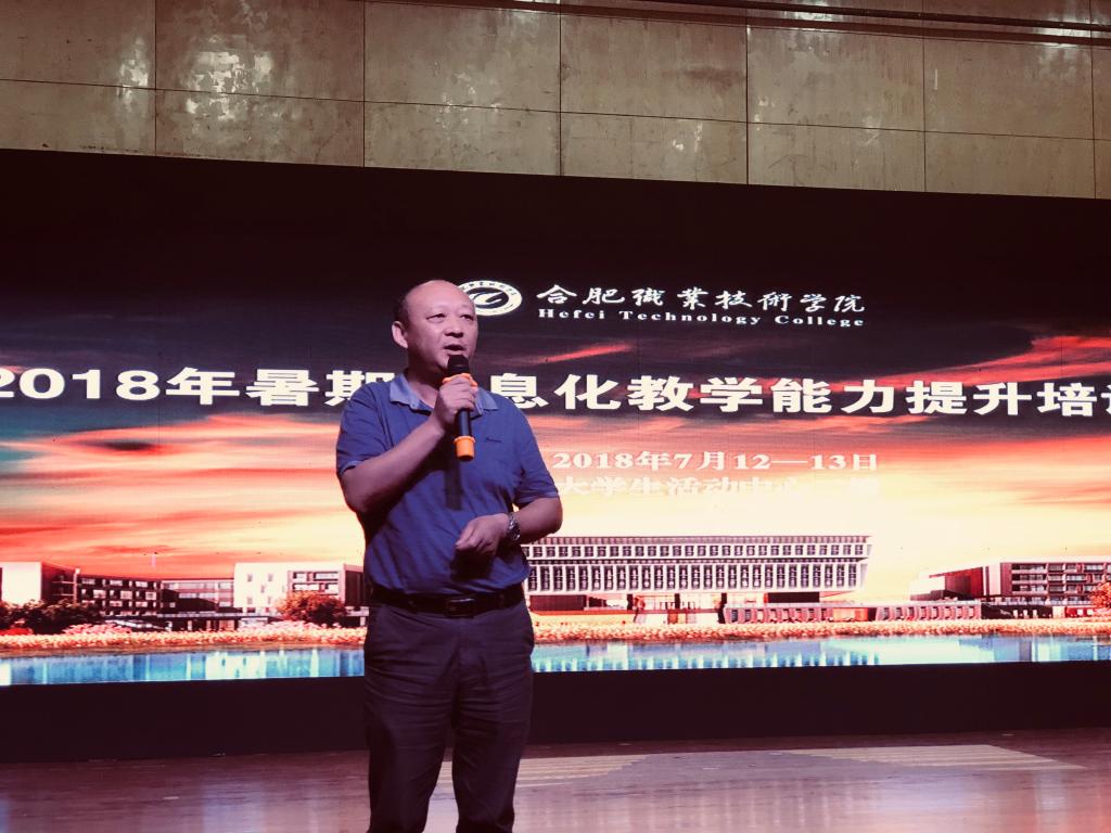 在随后进行的培训中,来自中国科大先研院(亚慕)信息科技有限公司商务经理培训师周曙、中国科大先研院(亚慕)在线教育MOOC创新实践基地副主任王魁、北京智启蓝墨信息技术有限公司华东大区总监王君、全国职业院校信息化教学大赛评审专家陈振源、安徽工商职业学院吴风波、超星集团慕课编辑部课程运营总监视频资源创意中心主任孔鑫凯等专家教授分别就“MOOC、精品开放课程项目建设标准与流程介绍”“智慧课堂项目建设思路分享”“用智能云教学引领课堂革命”“职业院校信息化教学能力提升途径与展望”“在线开放课程的实际应用”“在线课程制作与拍摄技巧”等内容作了专题报告。