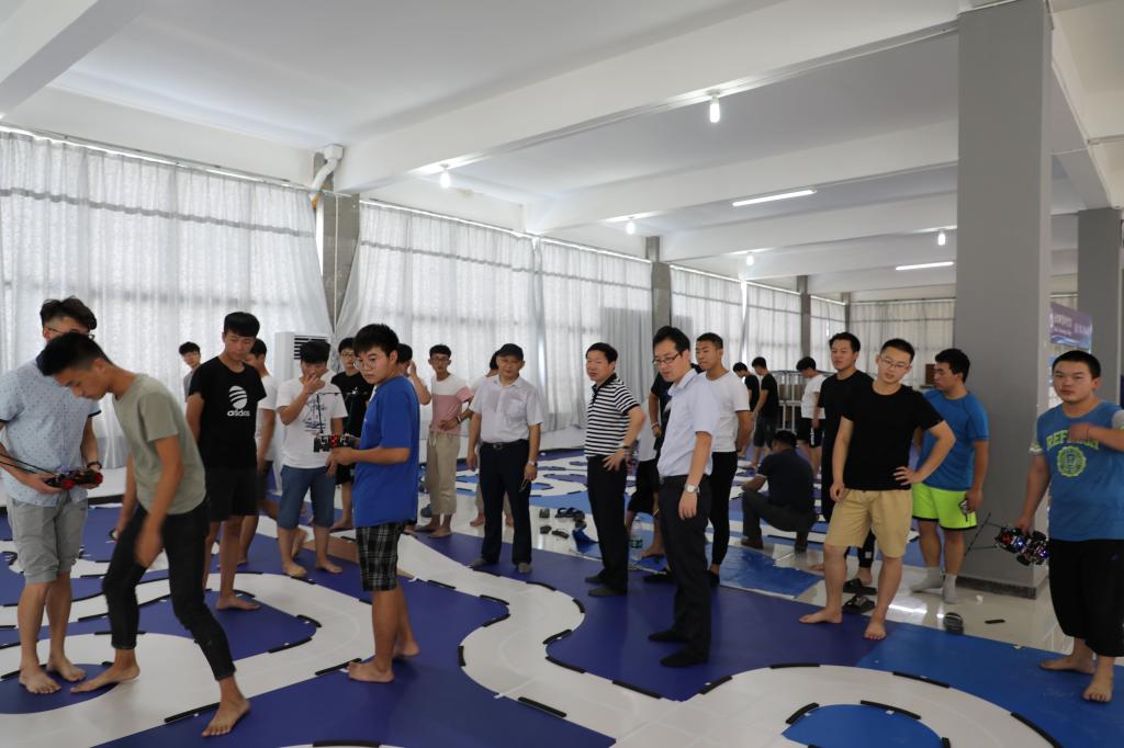 7月17日上午,校党委书记罗兆好、副校长周晓隆带领教务处相关人员看望学生在校赛训情况。校领导一行来到汽车检测与维修项目训练场所、智能车训练赛场、手球训练赛场、航模训练赛场,并和训练学生、指导老师亲切交谈,询问学生在学校训练的困难、问题,对他们冒高温酷暑在学校训练表示慰问。